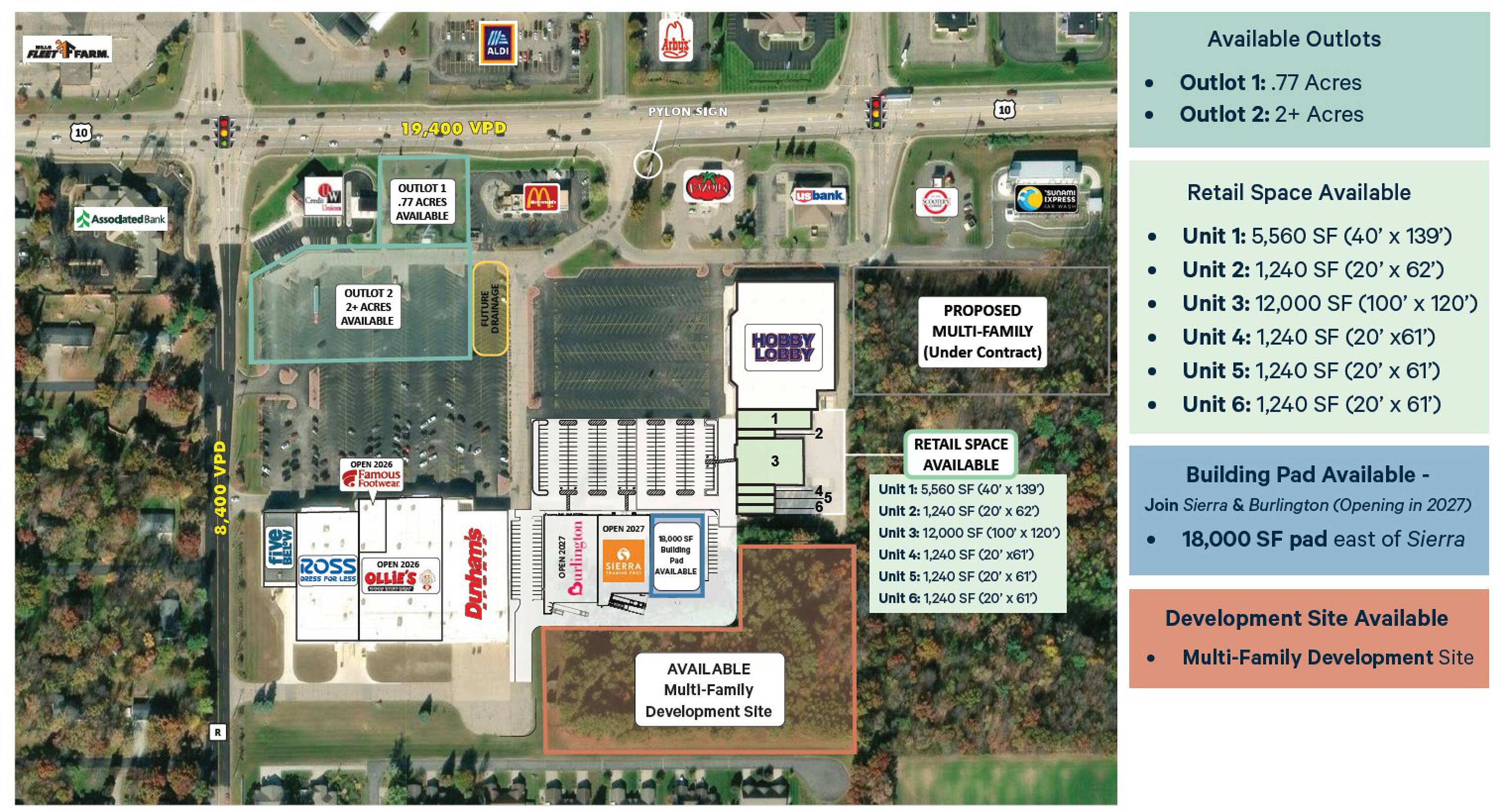 New retail development with spaces available for lease.