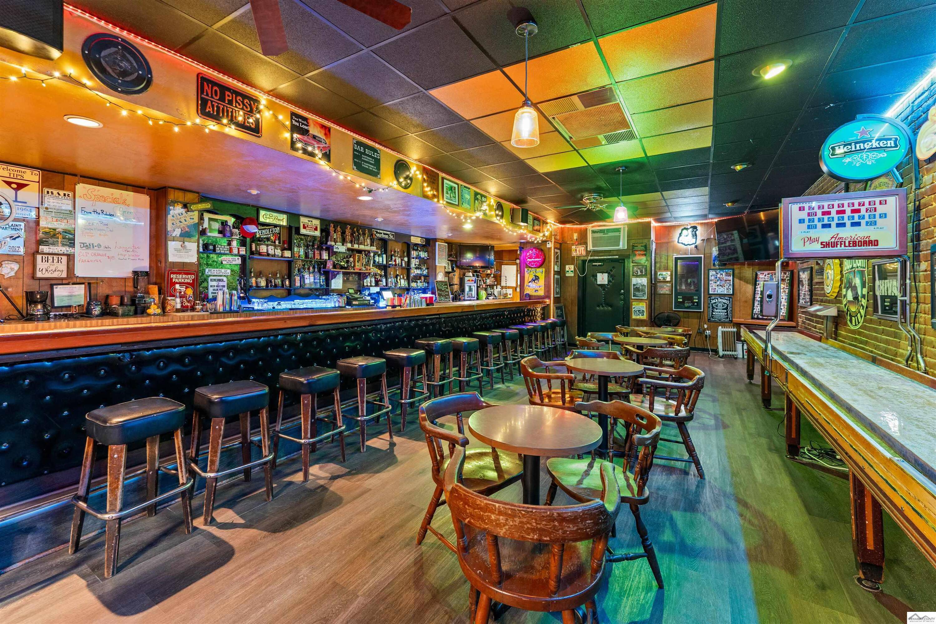 Established bar with apartments and rare liquor license for sale.