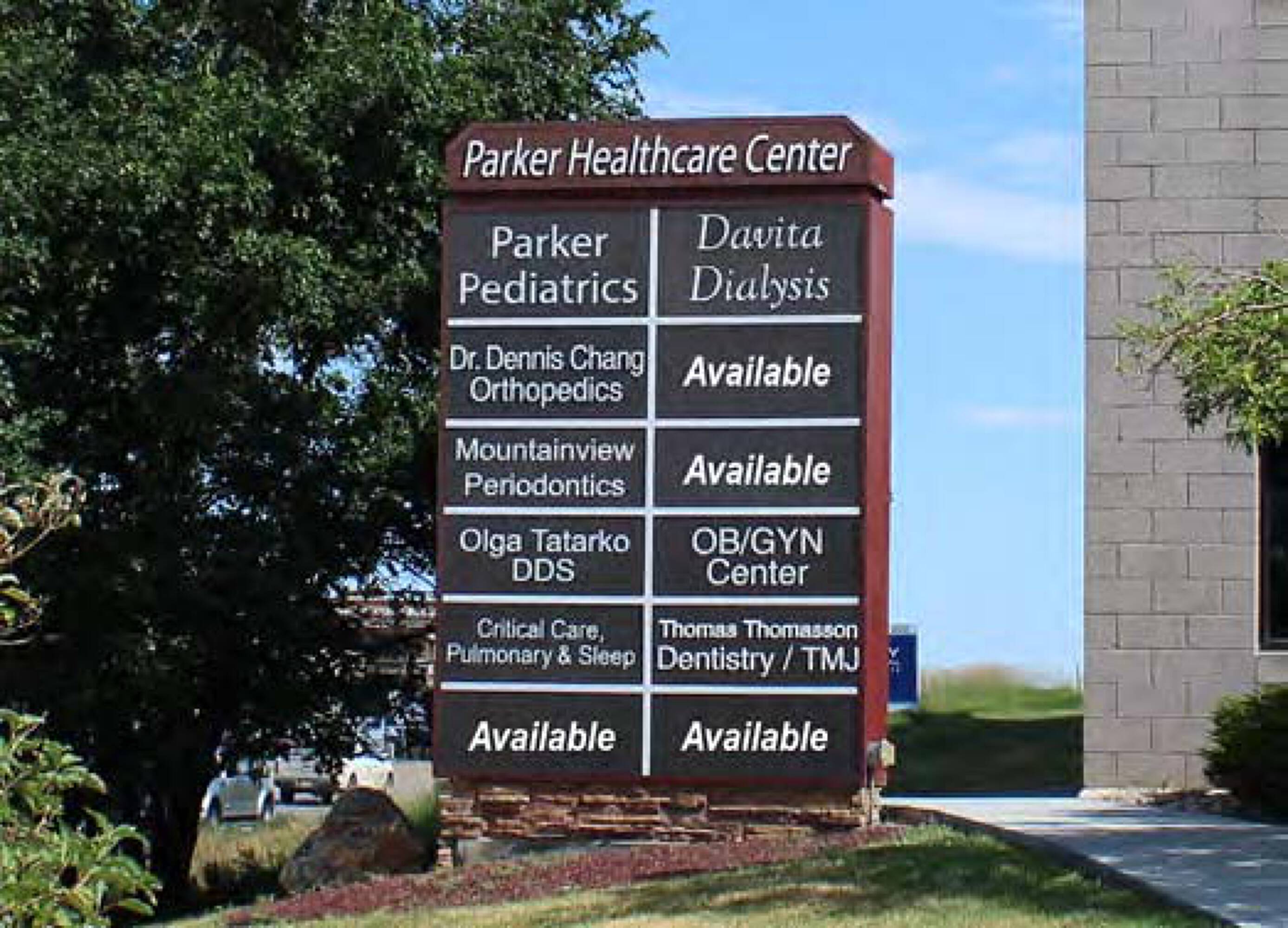 Parker Healthcare Center Medical Clinic Mountainview Periodontics Dental Office Dr. Maryanne B. ... Dental Office Tatarko Olga DDS Dental Office Thomas L. Thomasson, ... Dental Office