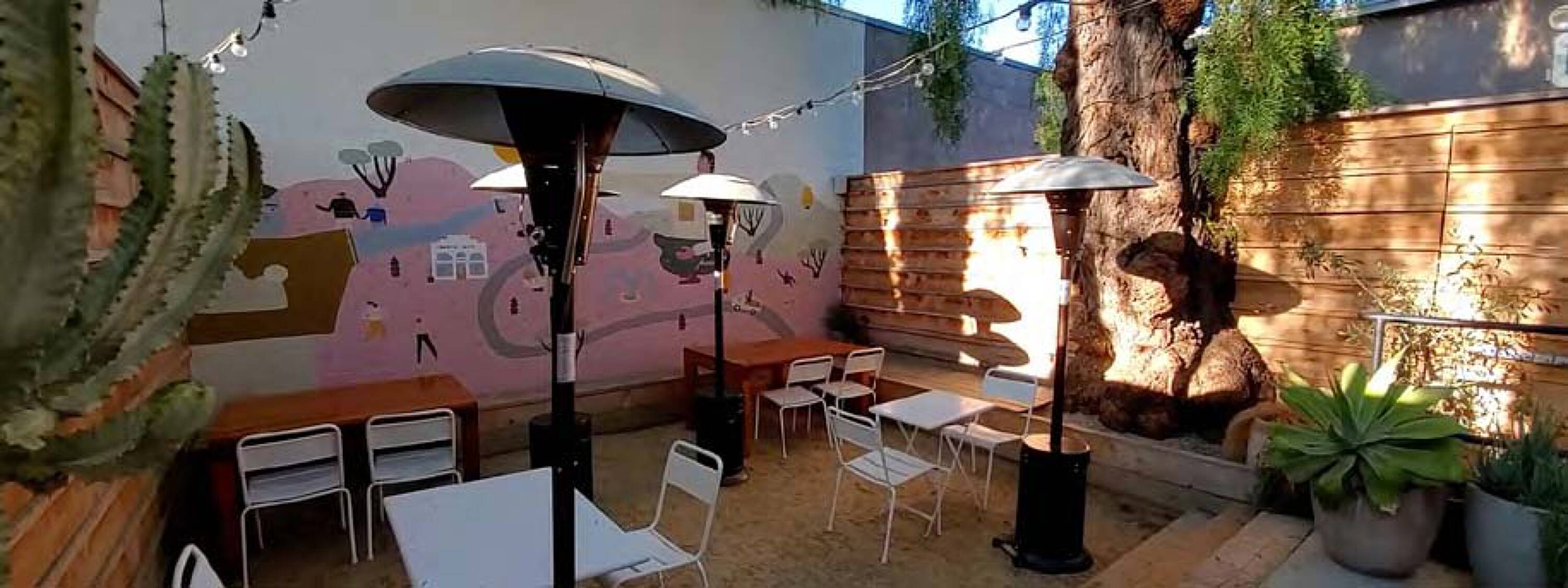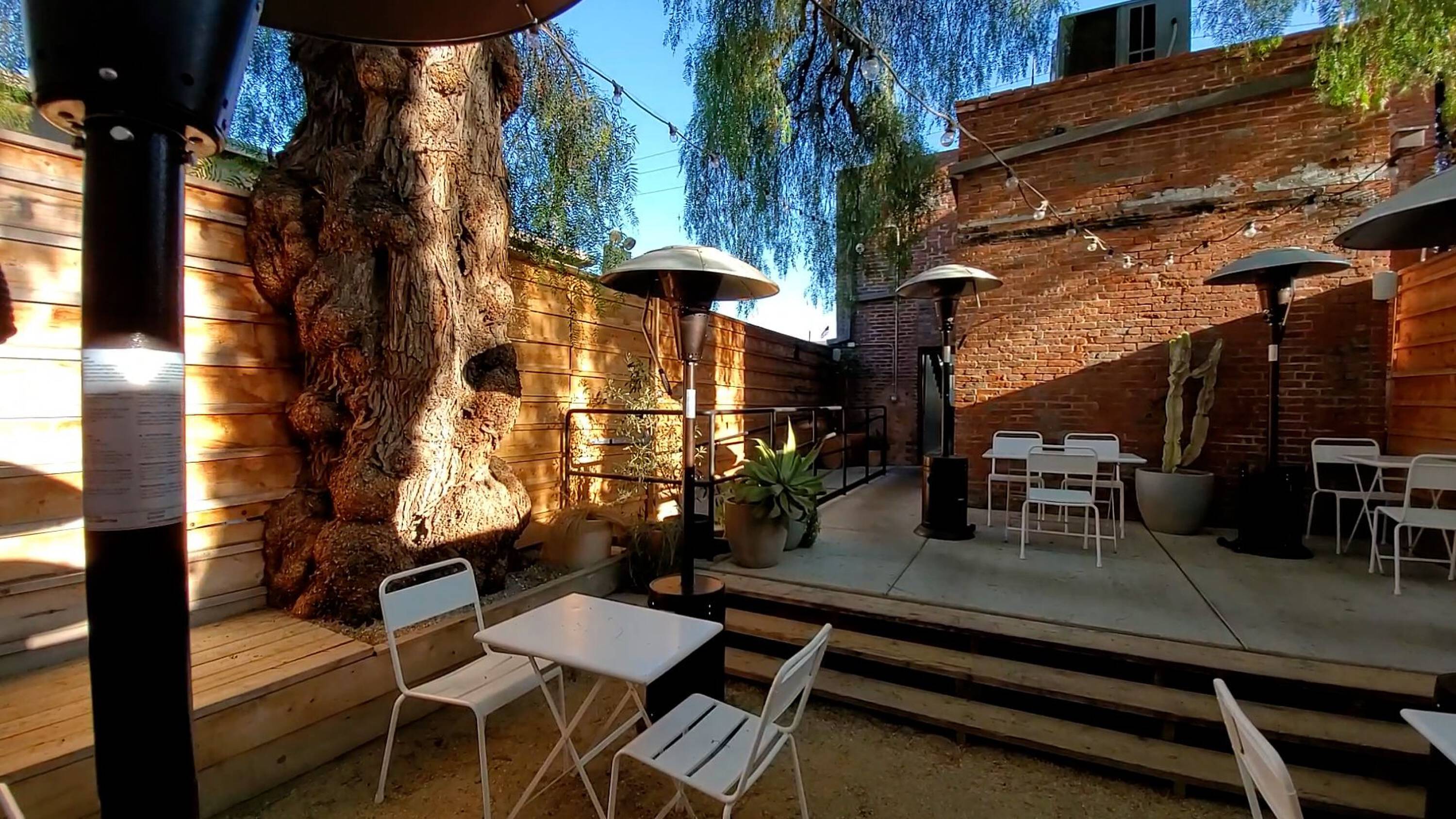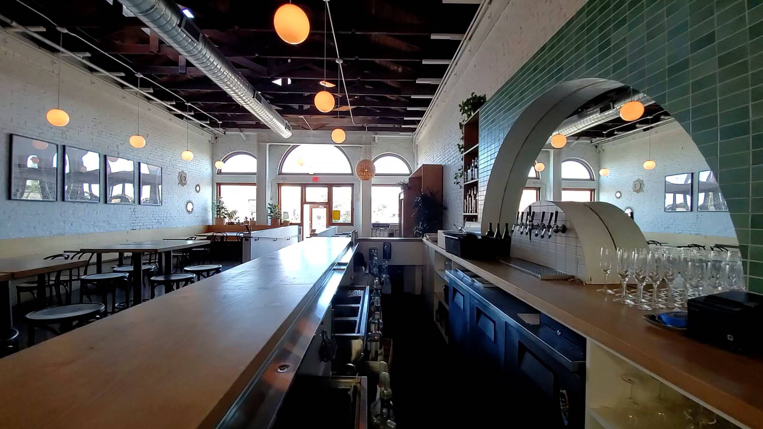 Freestanding restaurant/bar in historic building with rear patio.