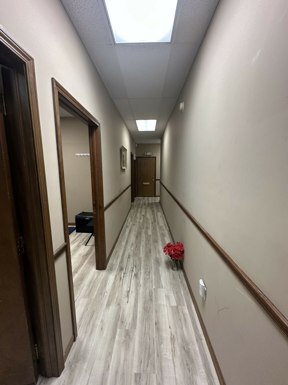 This turnkey office space is available for lease in Highland, Indiana. The property is situated on Indianapolis Boulevard within a high-traffic strip center. The plaza is anchored by a Dunkin Donuts and features a mix of tenants. Ample parking is available for both tenants and guests. The property is suitable for commercial real estate use, including office units, office properties and spaces, strip malls, and retail properties and spaces. NNN expenses are currently estimated at $4.50 per square foot. Signage is available on Indianapolis Boulevard.