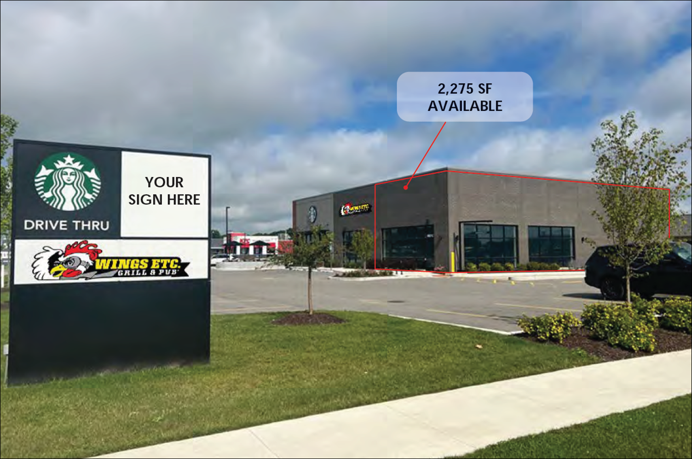 This property features: Anchored by Starbucks in a strong retail trade area.; **2,275 SF endcap with maximum visibility and prominent storefront presence.**; Located at a signalized intersection with strong traffic counts.