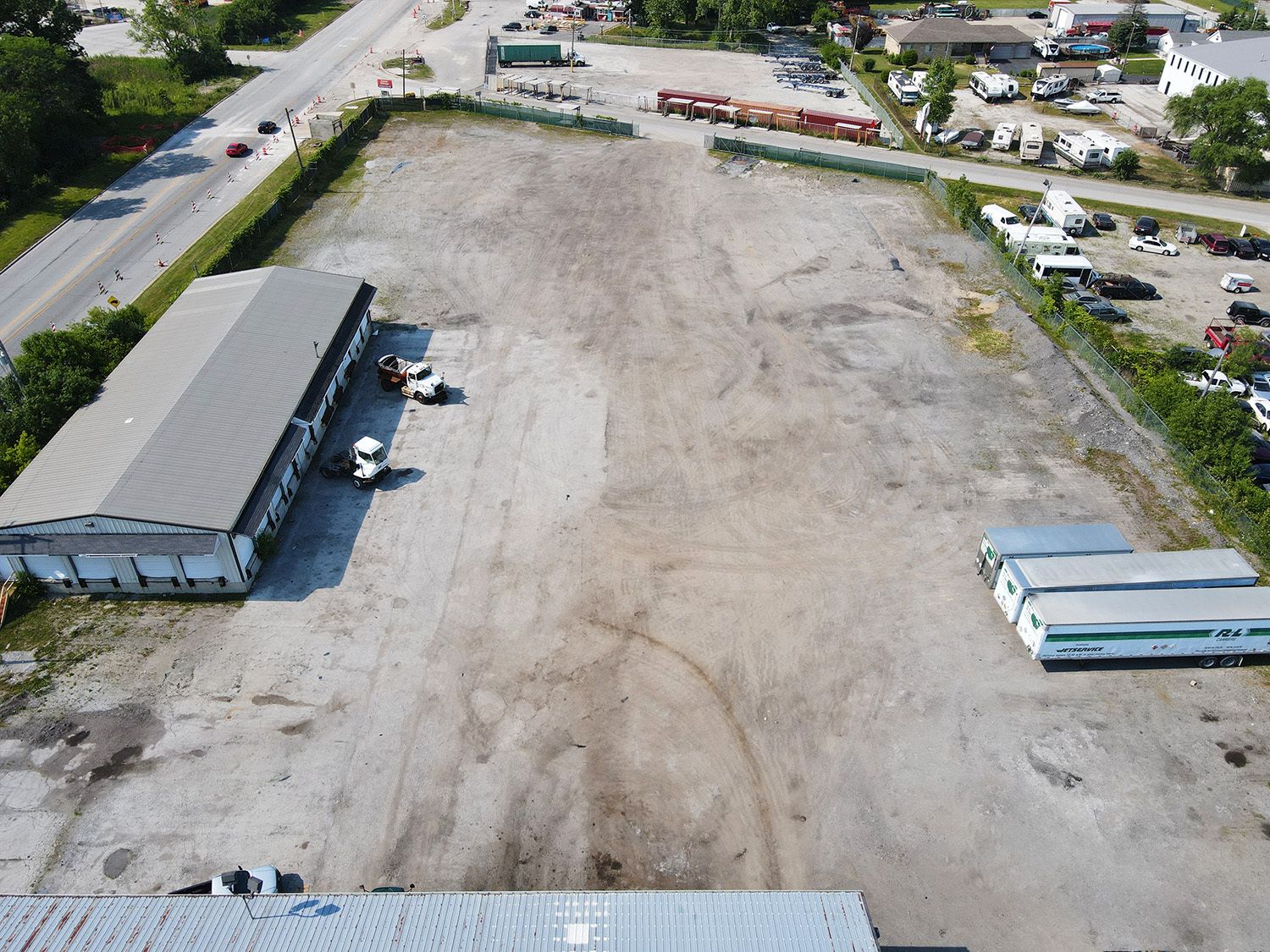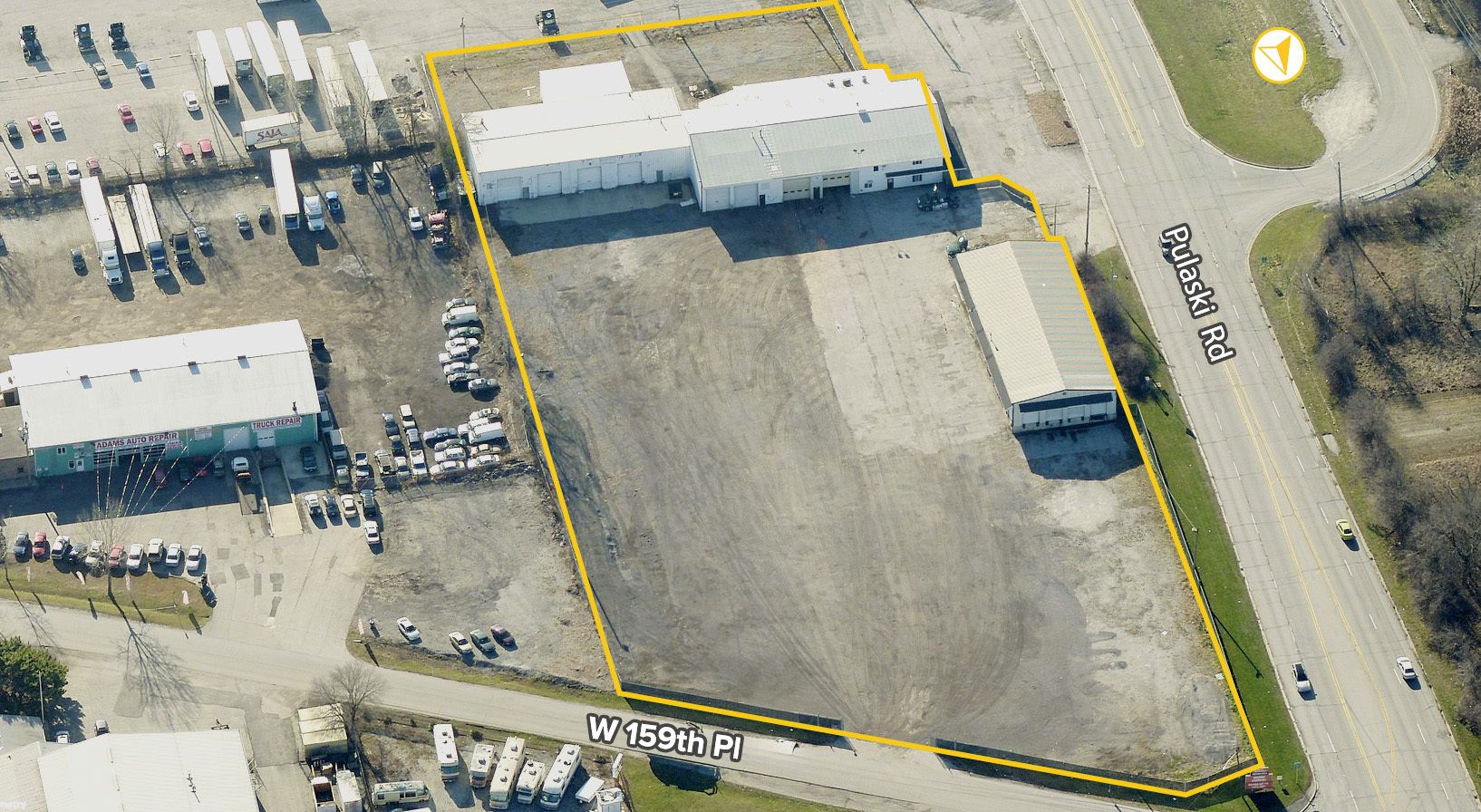 The property features an 18,000± SF shop suitable for warehouse, industrial, and retail use. It is located at 16059 Crawford Avenue, Markham, IL 60426.