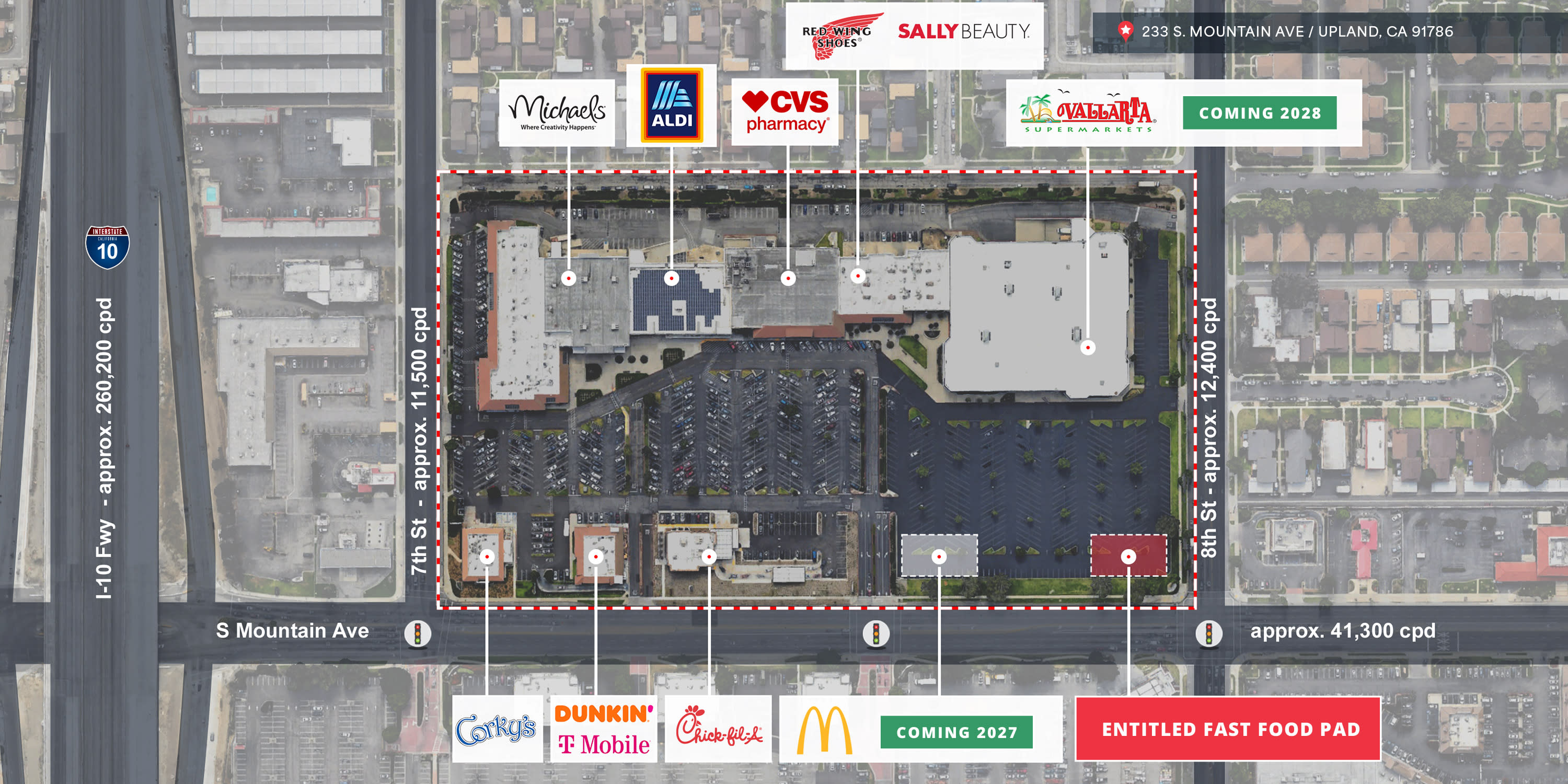 This property features: CUP Entitled Fast Food Pad; Grocery anchored daily needs center with regional pull; Impressive traffic counts & daytime population