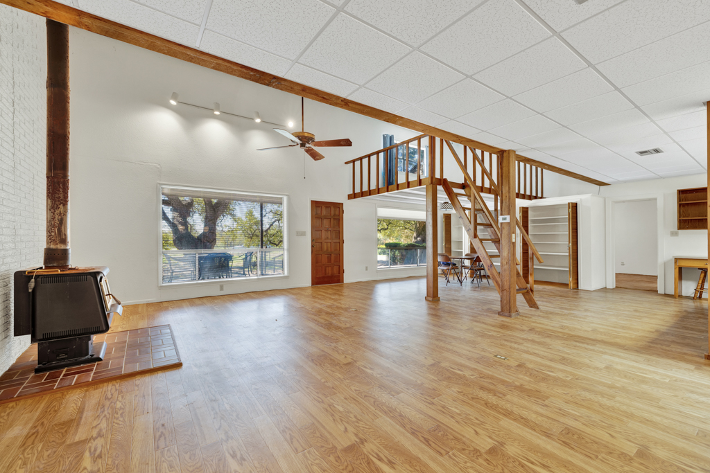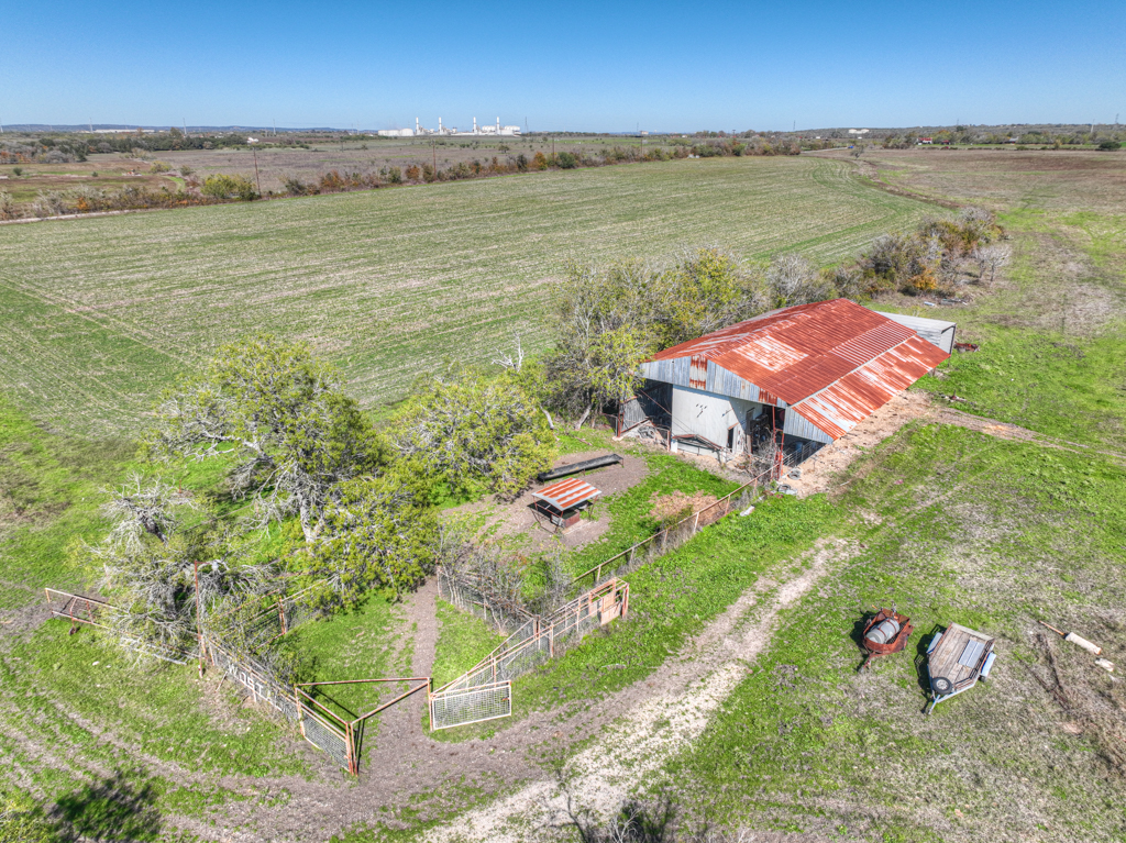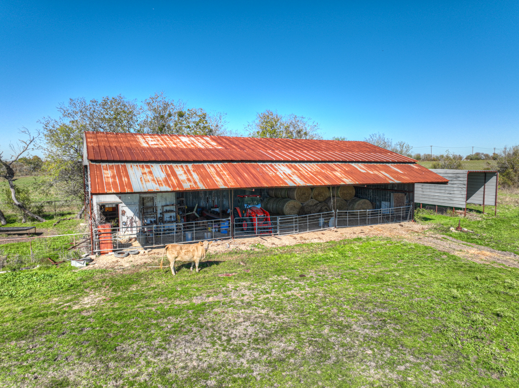 This 95.695-acre property offers a blend of rural charm and commercial potential. The landscape features mature oak trees, providing a backdrop for various activities. The property includes two wells and water supplied by Crystal Clear, ensuring a reliable water supply suitable for farming and ranching. Opportunities for wildlife sightings and hunting are available. The property includes an earth home design house, with an energy-efficient design. The residence features a layout emphasizing functionality and indoor-outdoor flow. Located outside of city limits and not zoned, the property allows for flexible land use, providing possibilities for commercial development, a dream home, farm, or ranch. The property is located near San Marcos and New Braunfels, with convenient access to the Outlets in San Marcos and I-35, which is 4 miles away. The property includes a front porch and a carport area.