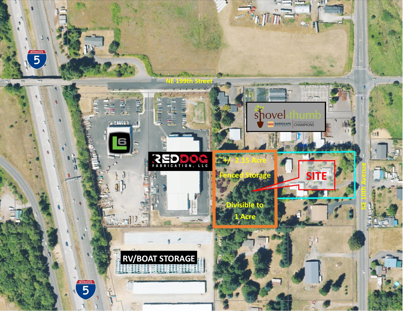 Graded, rocked, fenced laydown yard or equipment storage available.