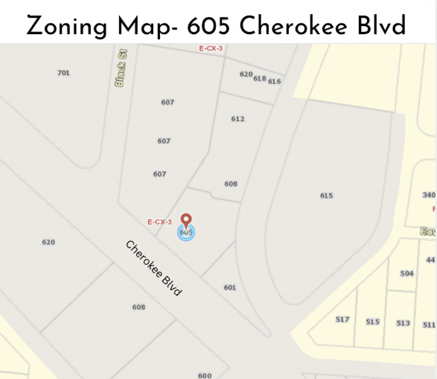 This property features: Prime location on Cherokee Blvd with high visibility and over 14,000 cars passing daily.; Zoned E‑CX‑3, suitable for retail or office use, buildable up to 3 stories.; Versatile 0.3049‑acre lot with potential for development.