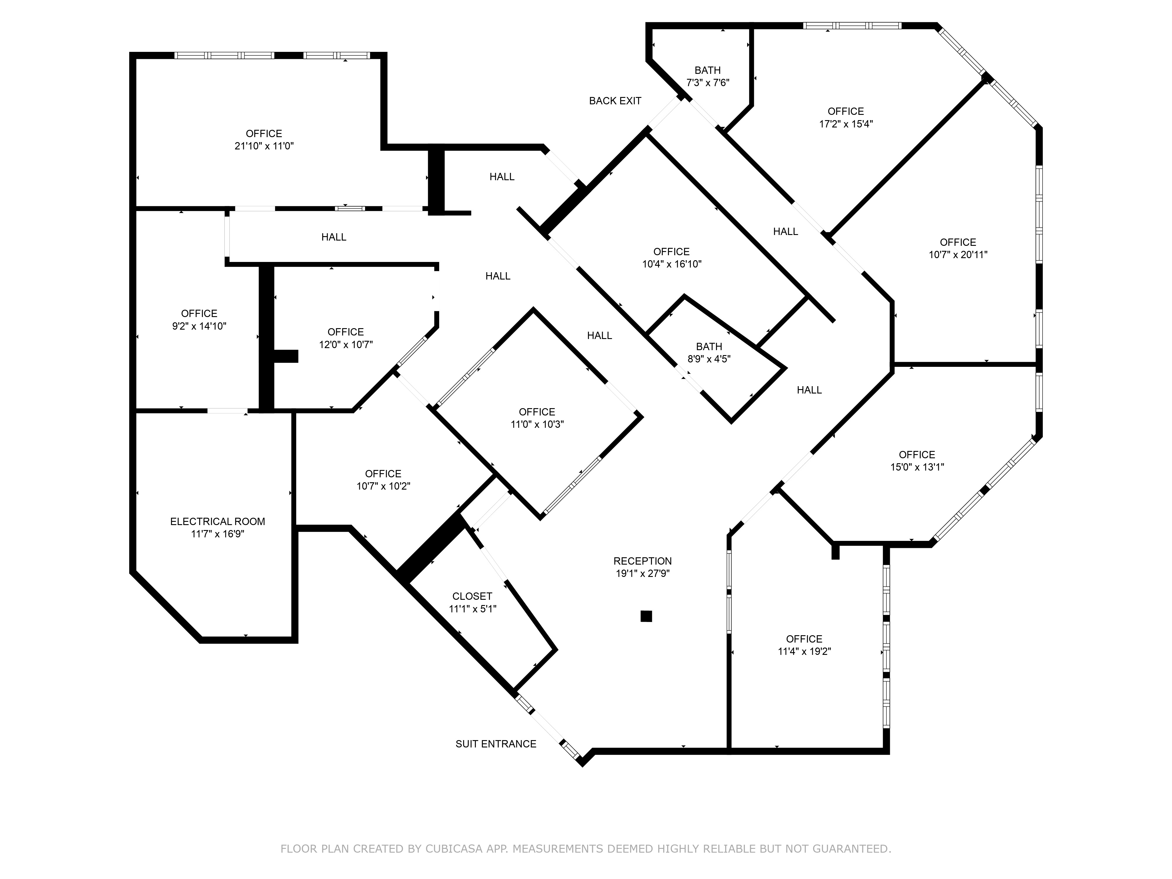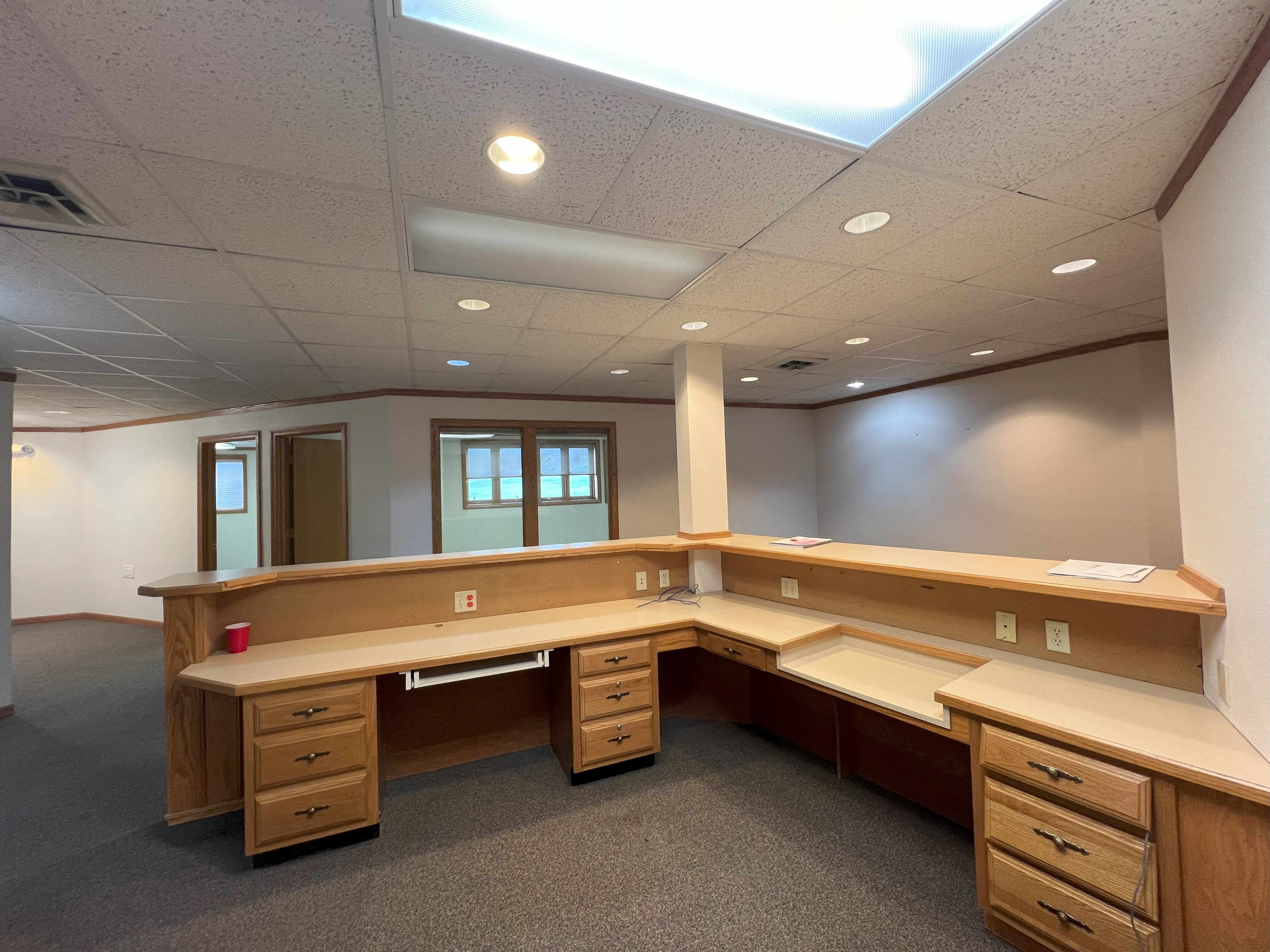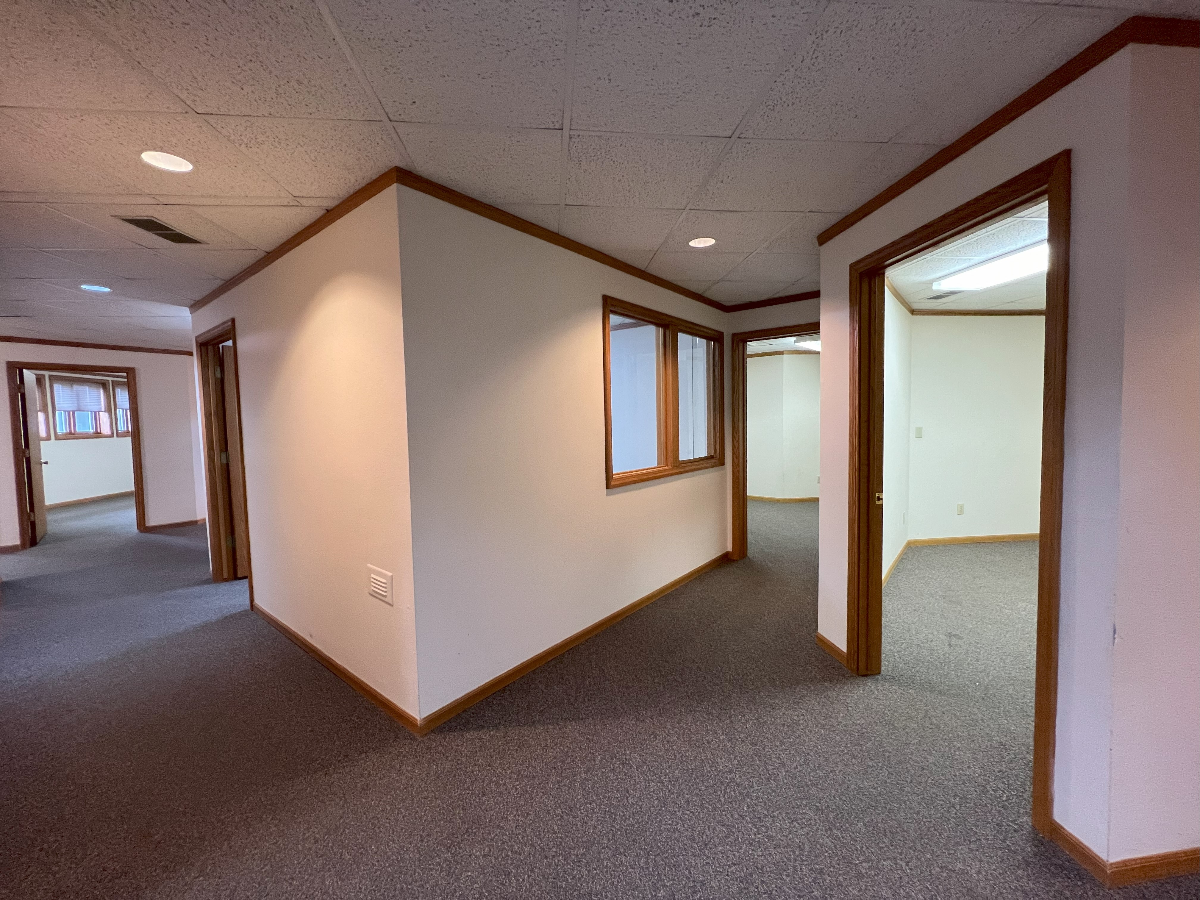Office space with up to 10 private offices for lease.