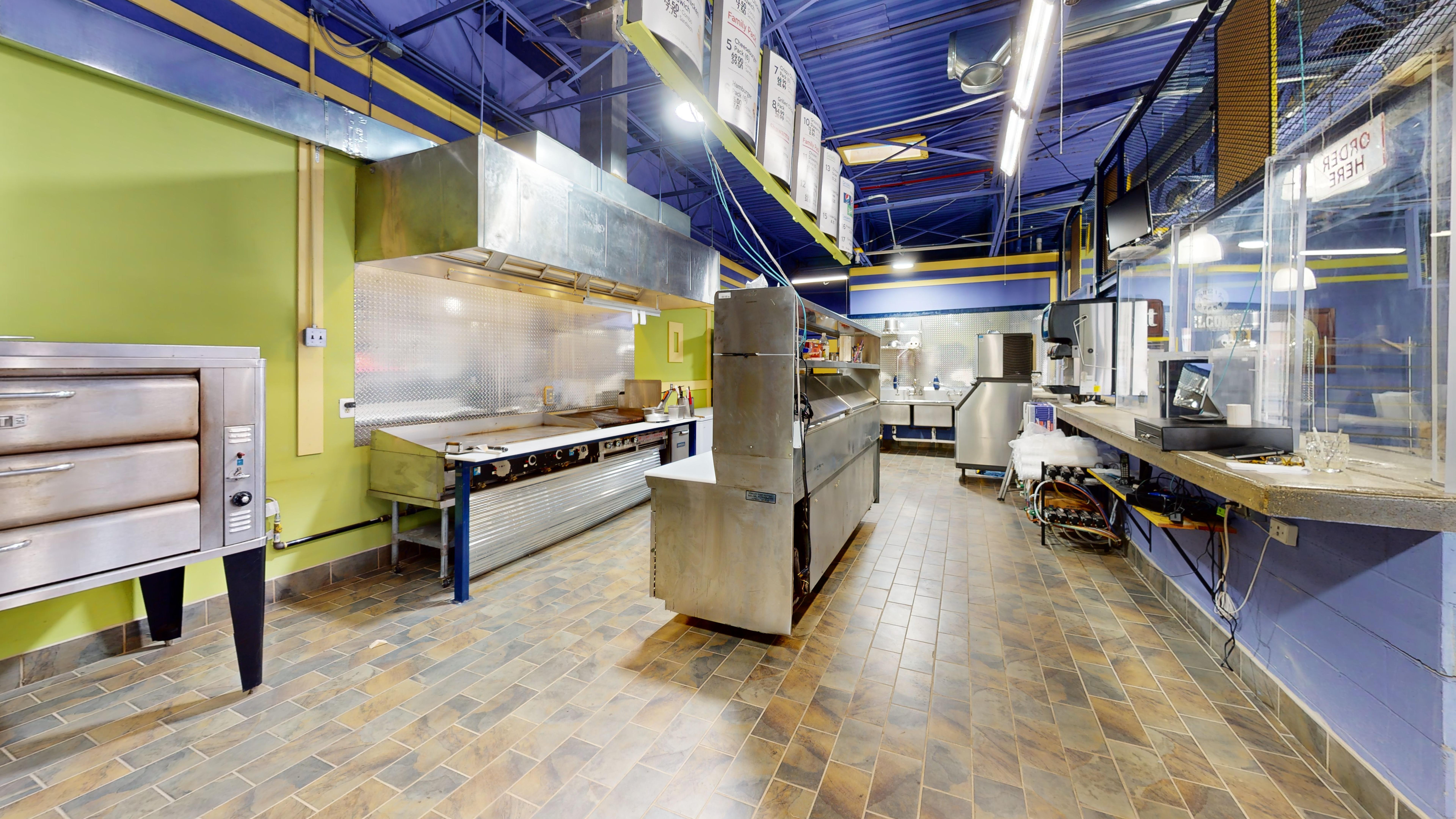 This commercial space is built out as a full-service restaurant and is located in a high traffic area. The lease includes all equipment, such as deep fryers, pizza ovens, a flat-top, and a char-grill. This property is suitable for conventional restaurants and other restaurant concepts.