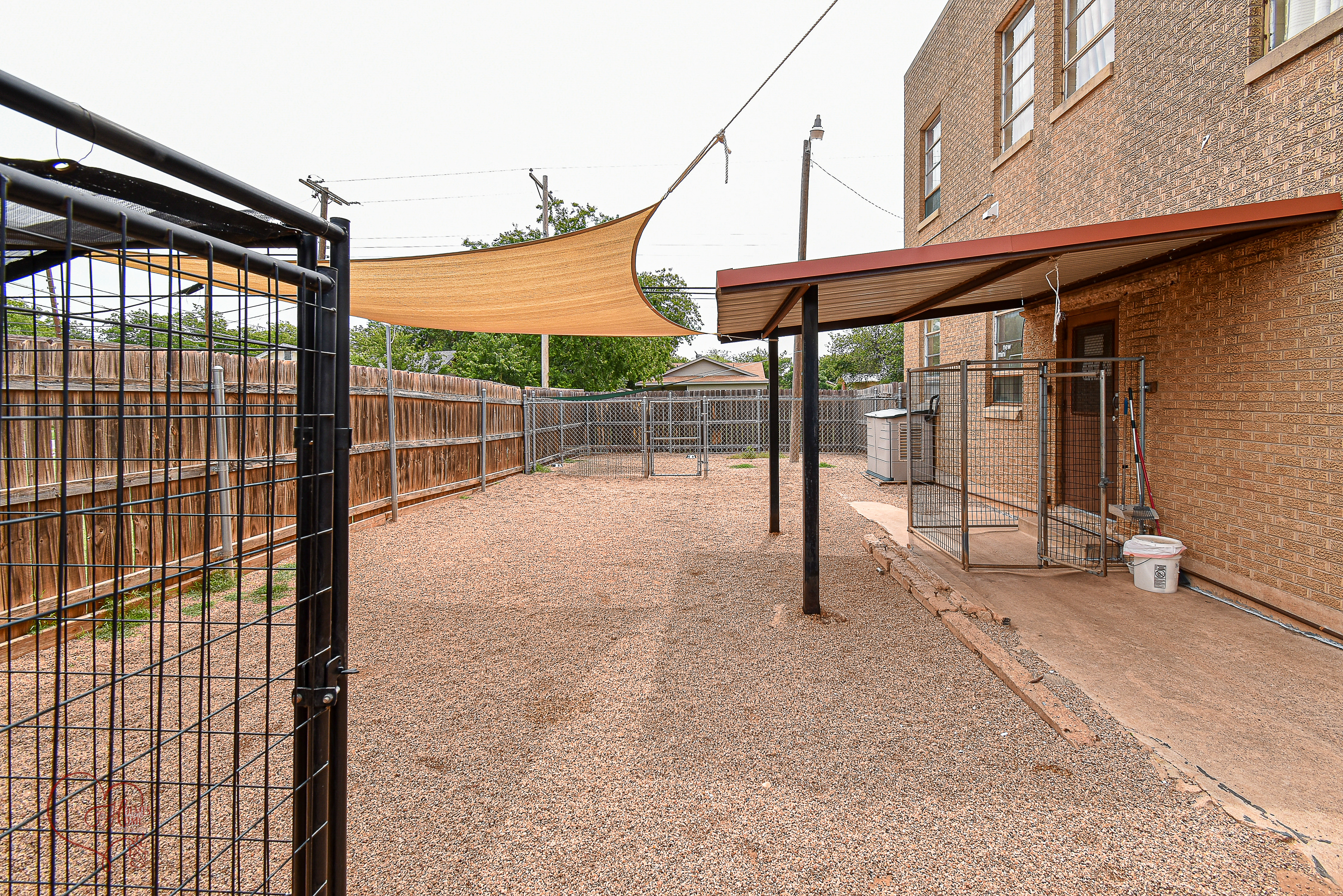 This 7,000 sqft two-story facility is designed to accommodate up to 60 dogs and 20 cats, with potential for expansion. The facility features a welcoming entry area with a receptionist desk, retail items, and a dog tag system. A dog bathing and grooming area is equipped with tables, clipper vacuum systems, shampoos, and tubs. There are currently wait list for pet grooming. The facility includes 4 kennel areas with secured dog kennels of various sizes, beds, and food bowls. The upstairs "cattery" contains custom cat quarters and a cat tree. The building has storage areas and extra rooms suitable for expansion. A separate upstairs apartment area includes 2 bedrooms, a living room, a full bathroom, and a washer and dryer. The downstairs kitchen features 2 full-size refrigerators, a stainless steel worktable, a washer and dryer, and cleaning supply storage. The property is fully fenced and includes 3 play yards with porch coverings, metal awnings, and a gazebo for shade. There is a customer parking area, a large metal-covered carport, and a 50X20 workshop/bus barn with 50 amp power, plus a large area for expansion. The facility currently operates a pet taxi service using a 2012 VPG MV1 Vehicle. The property is located in Abilene, TX.