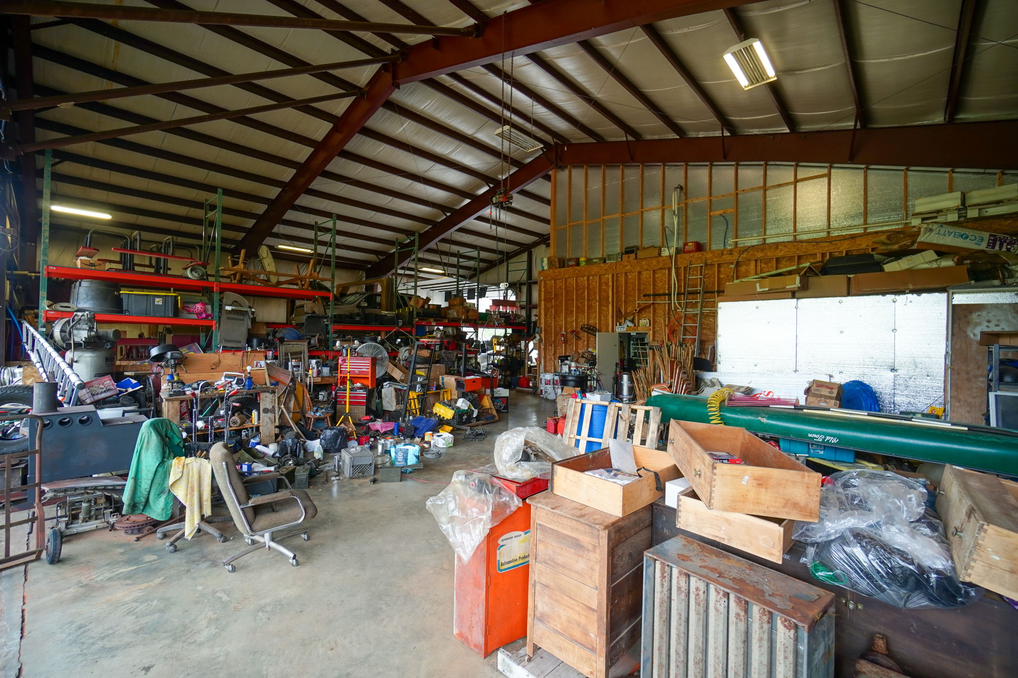 This 17+ acre property in Rumford offers a combination of features and potential. It includes a 60’x80’ hangar, currently utilized as an auto repair shop and flex space. The hangar is fitted with a 14’ garage door and a 40’ electric door, providing ease of access. The building is fully insulated with a 4.5’ pitched roof and heated concrete floors. The property features a 1600’ x 80’ private runway that runs parallel with the Androscoggin River. River access and a private campsite create opportunities for recreation. There is also direct access to ATV and snowmobile trails. The property could be used for storage or industrial purposes, with the opportunity for aviation activities.