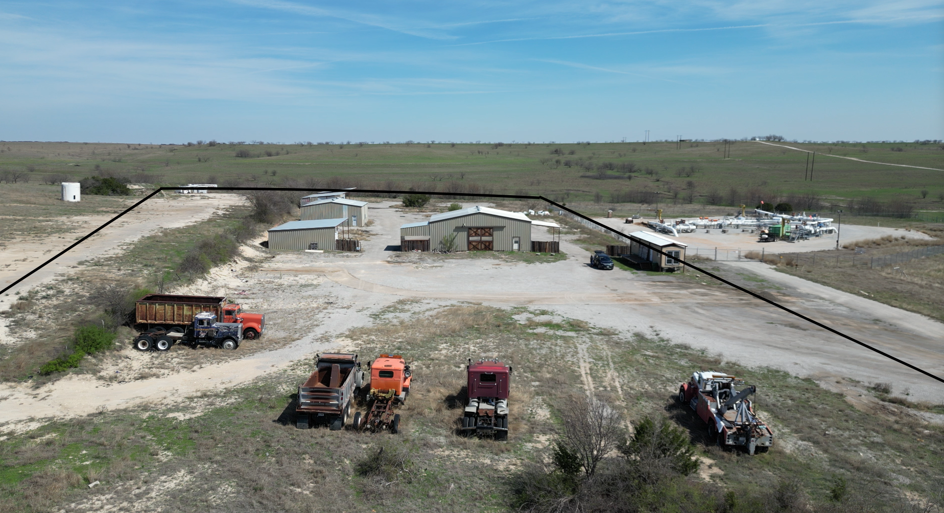 Office and four bays for commercial truck repairs on 5-acre lot.