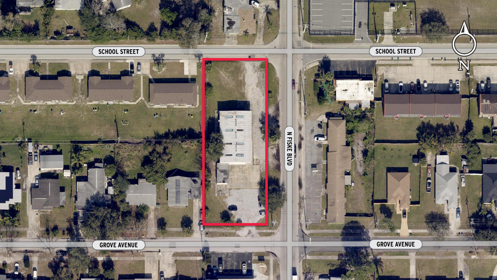 This triple frontage property is located in Florida's Space Coast region, offering multiple access points. It is situated approximately 1/4 mile north of SR-520 / King Street and less than a mile west of US-1, providing a convenient location. The property is less than a 10-minute drive from I-95 and the Beachline Expressway (SR 528) / A1A intersection, facilitating easy access throughout the area. The surrounding area includes residential and wholesale commercial properties. The property features a ±4,416 SF warehouse with office space, recently renovated in early 2024. The total area is 0.59 AC, featuring triple frontage and convenient access on N Fiske Blvd, School St, and Grove Ave. The warehouse has a 14’ clear height and includes 4 grade-level roll-up doors. There are 2 bathrooms, including 1 ADA bathroom. The office space can accommodate 2-3 desks, or 2 desks and a break area, and includes a utility closet. The office space is air-conditioned. Renovations include new and upgraded electric and lighting, new plumbing, a new roof, new grade-level roll-up doors (12’ x 12’), new flooring in the office space, new interior and exterior paint, and a freshly paved and re-striped parking lot. A new sidewalk connecting the warehouse rear to the office bathroom is under construction, reducing foot traffic through the main office area.