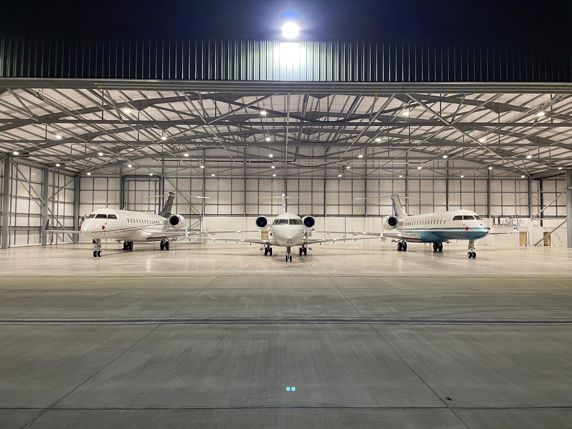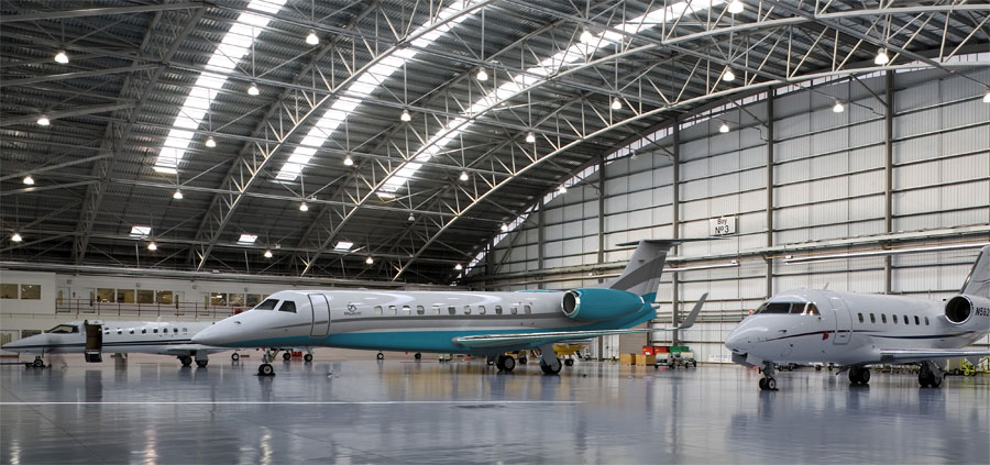 Custom-built 14,400 sq ft hangar with executive amenities.