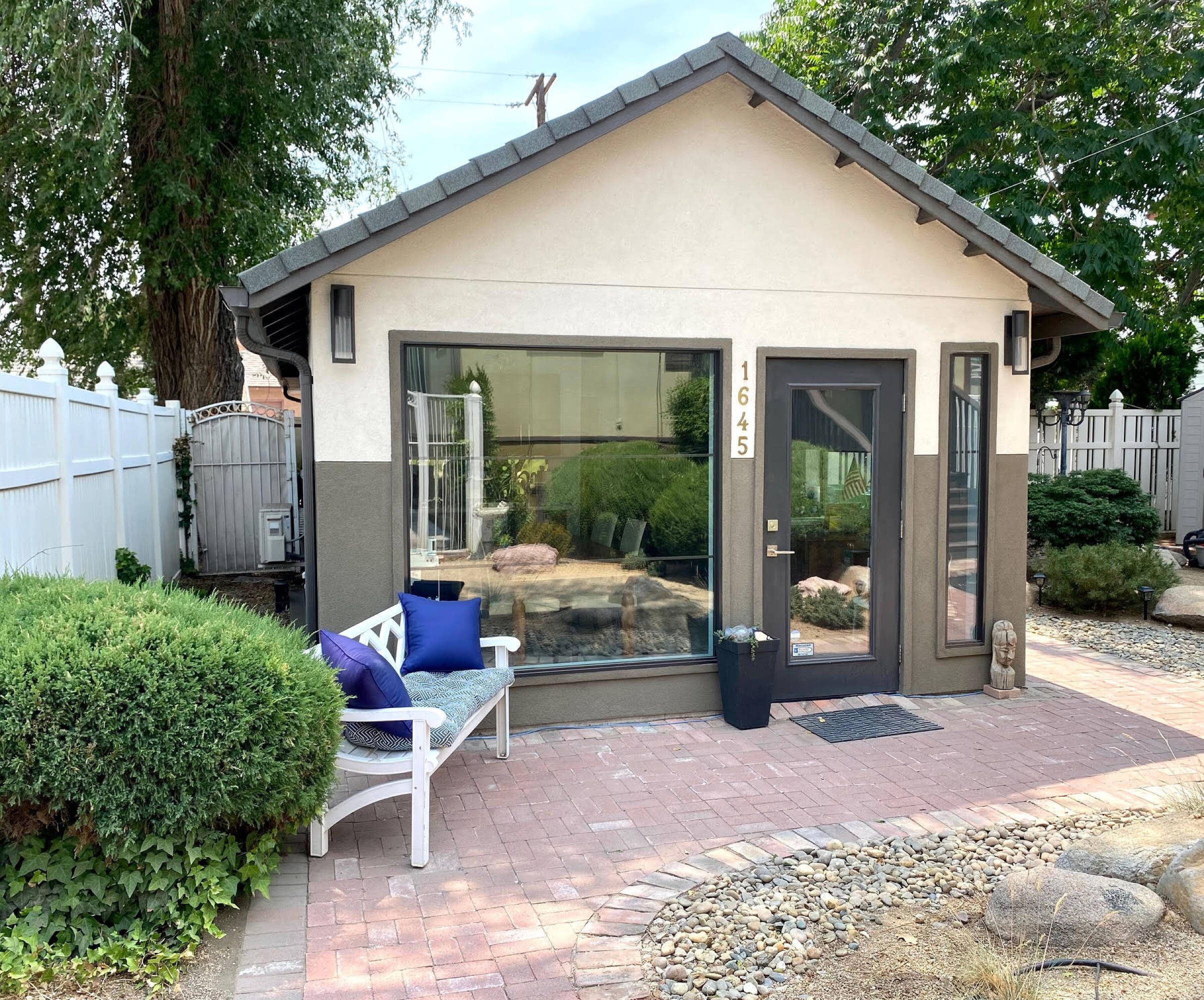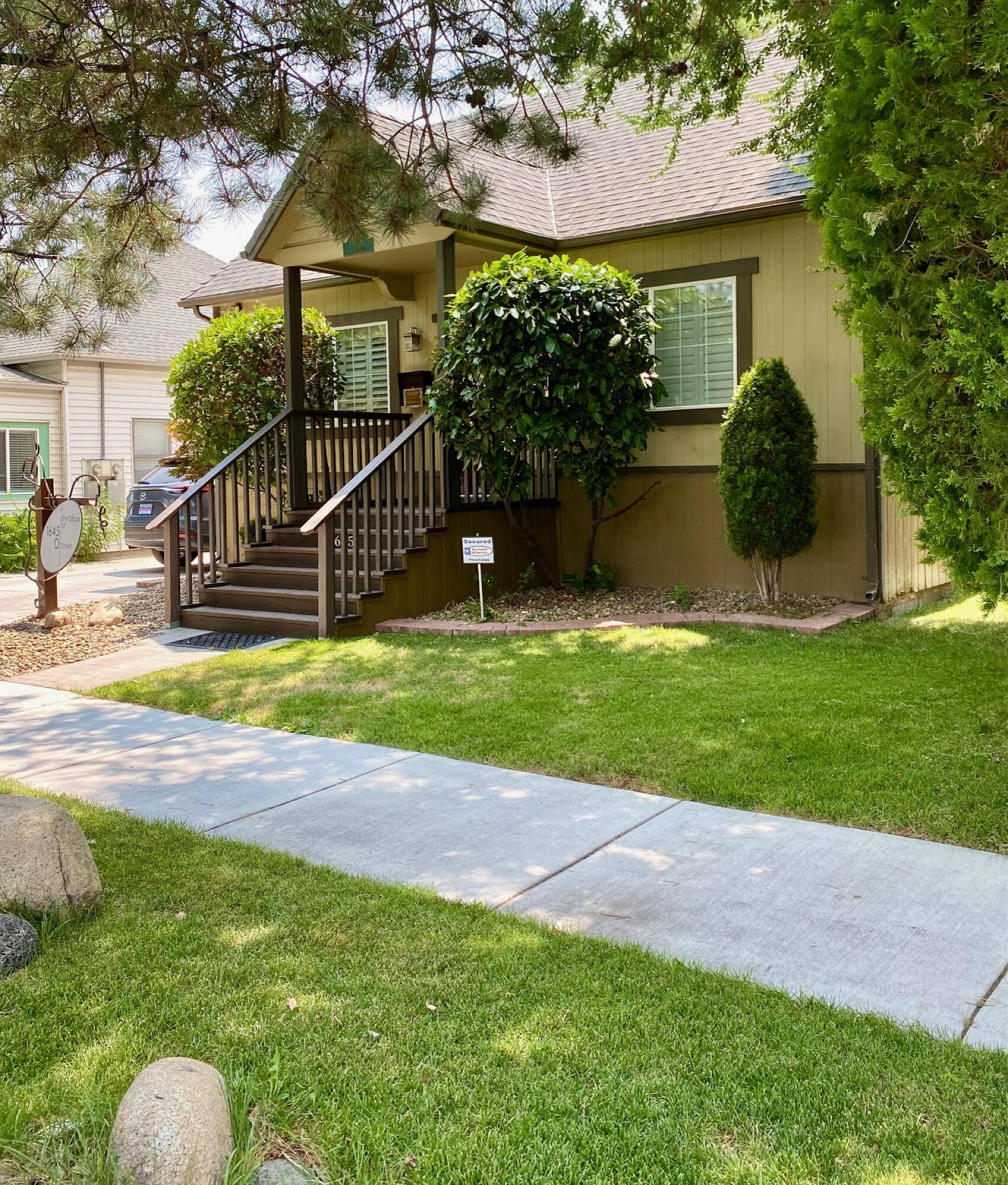 This property features: Two buildings included: a **1,590 SF main office** and a separate **522 SF ADA‑accessible studio office** with a break area and bathroom.; Convenient location near I‑80 and US‑395 in downtown Sparks.; Includes furnishings in both buildings.