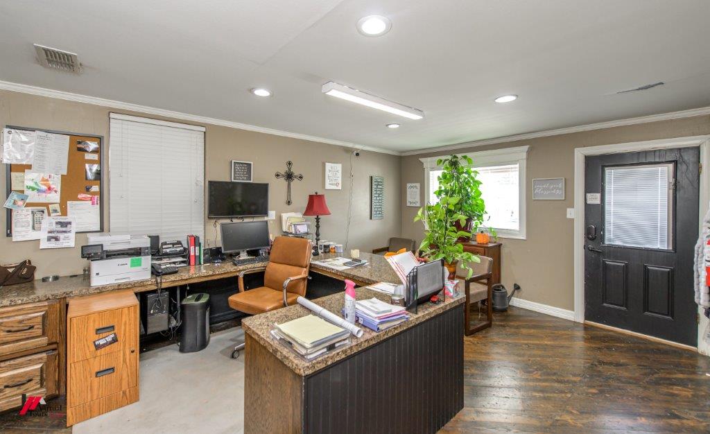 Mixed-use property with office/warehouse and two apartments for sale.