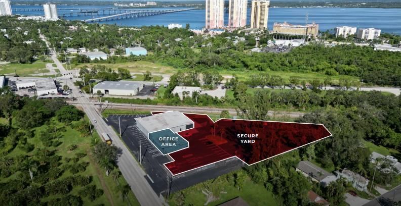 One acre secured yard with controlled access and surveillance.