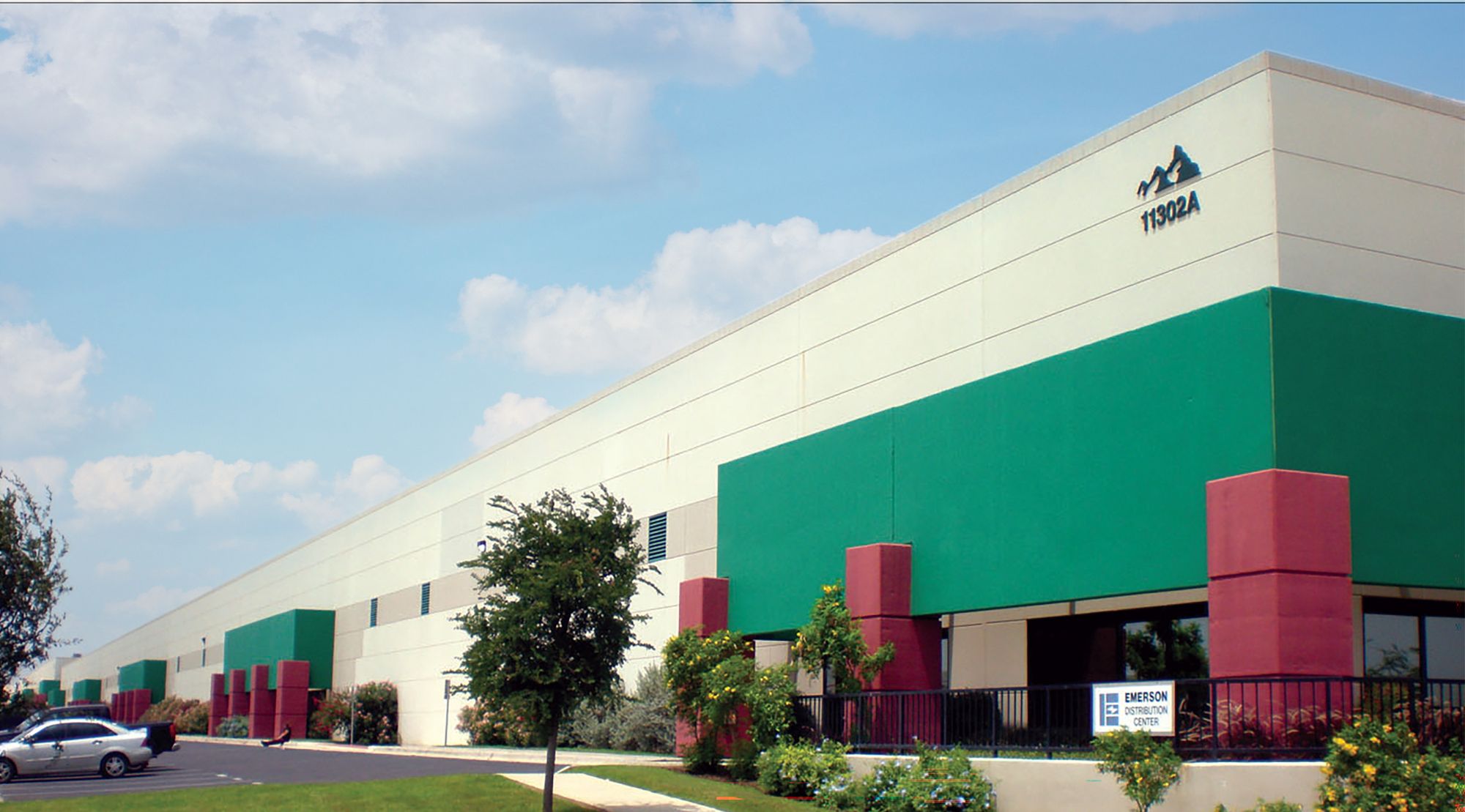 Commercial space with shipping office, loading docks, and fenced truck court.