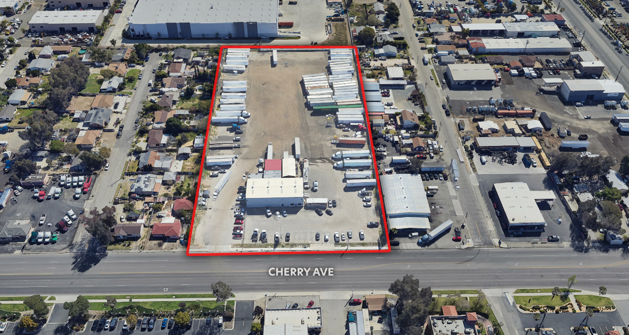 Available for lease is a 5.2-acre land parcel located on Cherry Avenue in Fontana. The property includes an approximately 5,000-square-foot maintenance facility and an approximately 900-square-foot office pod with restrooms. It features two ground-level doors and direct access to Interstates 10 and 15. The yard is fully secured and includes approximately 120 trailer spaces and approximately 20 employee parking spaces. The base is made of asphalt and slag. Highly visible monument signage is present.