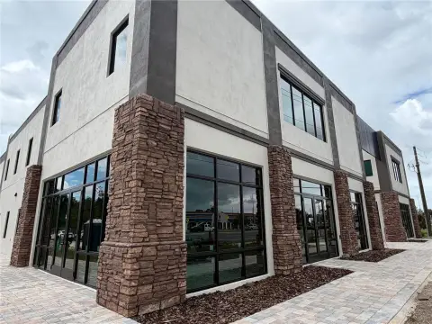 Newly constructed mixed-use building with office and retail spaces.