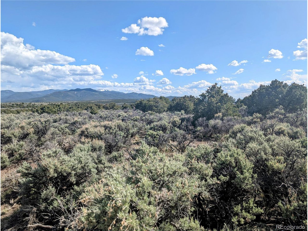 This 35-acre parcel is located just off Elk Park Road in San Luis, Colorado, bordering New Mexico, on Wild Horse Mesa. The property sits at approximately 8,600 feet, offering panoramic views of the San Luis Valley and the Sangre de Cristo Mountains. Taos, New Mexico, with its art and culture, is an hour away. The land features a mix of sagebrush and mature pinon pines, providing a balance of sun, shade, and privacy. The terrain is level, and there is year-round road access, making it suitable for building an off-grid mountain retreat. Wild horses roam freely across the mesa, and game trails indicate the presence of mule deer and elk. The location offers hunting and fishing opportunities and stargazing under clear, high-altitude skies. The property has potential for recreational use, a weekend escape, or off-grid living with year-round access and southern exposure. Approximate center GPS coordinates: 36.99772, -105.49243.