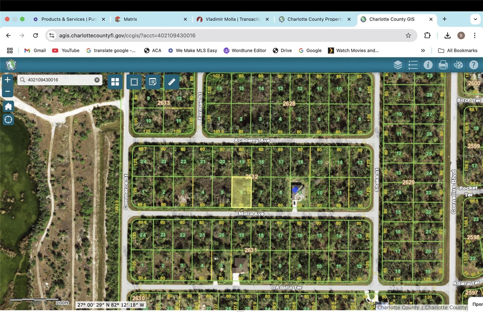 Located in Charlotte County, this land is accessible from 41 North, with a right turn onto Cornelius Boulevard, another right onto Adalla Terrace, a right onto Shake Street, and a left onto Molla Avenue.