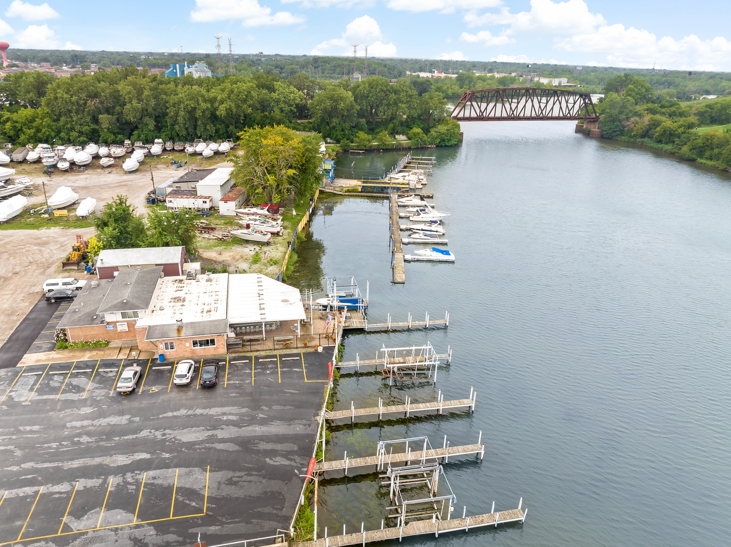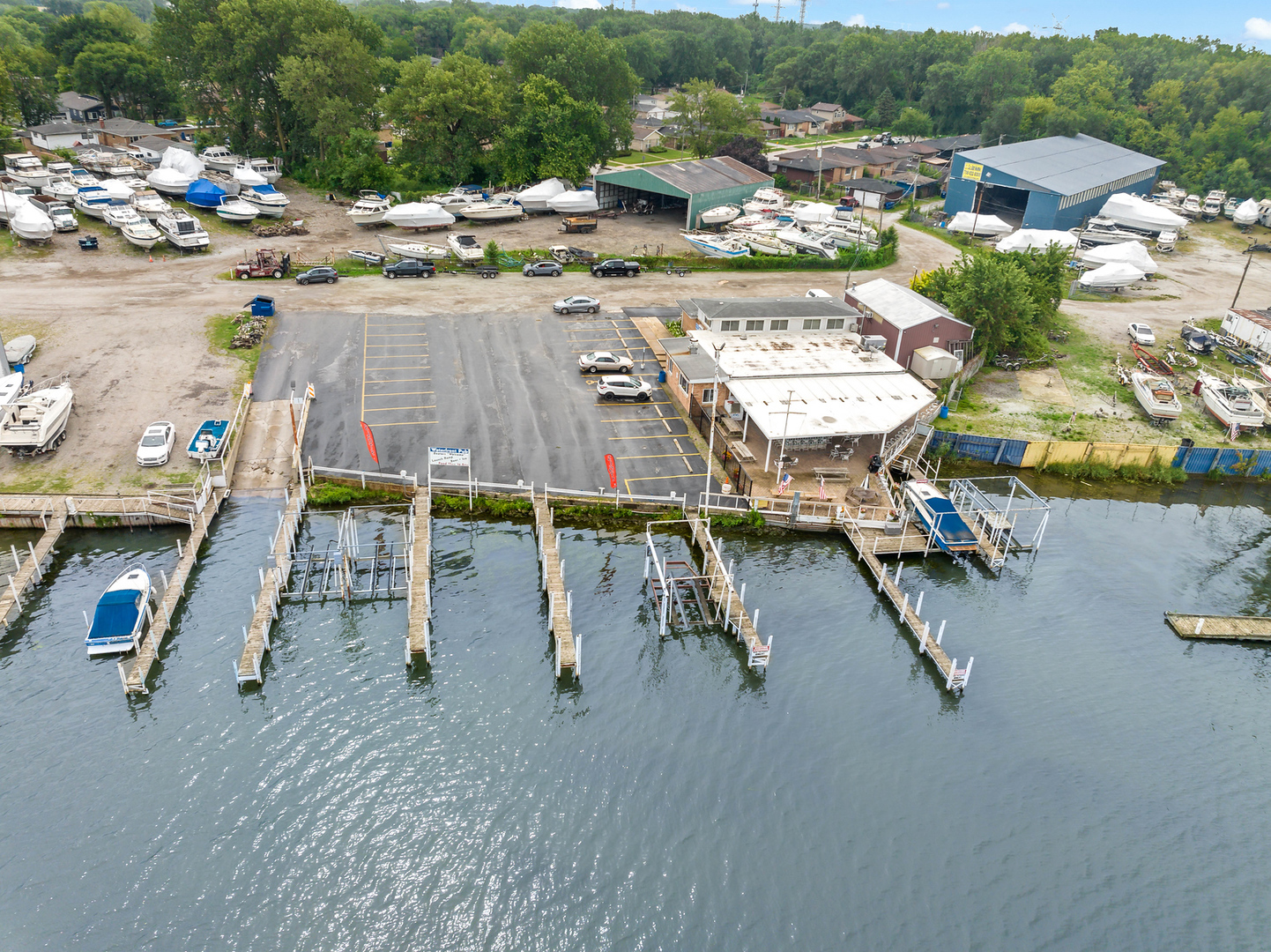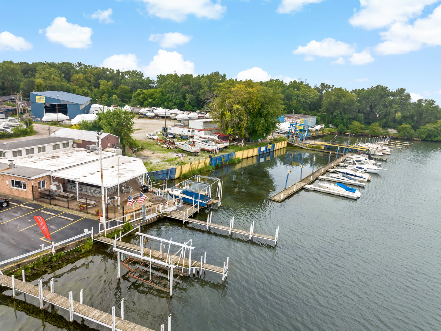 The property is located off Torrence Avenue, west of the 140th Street stop light. Continue west to the river, then turn left and go south to the end of Croissant Drive. The property is a waterfront restaurant and bar.