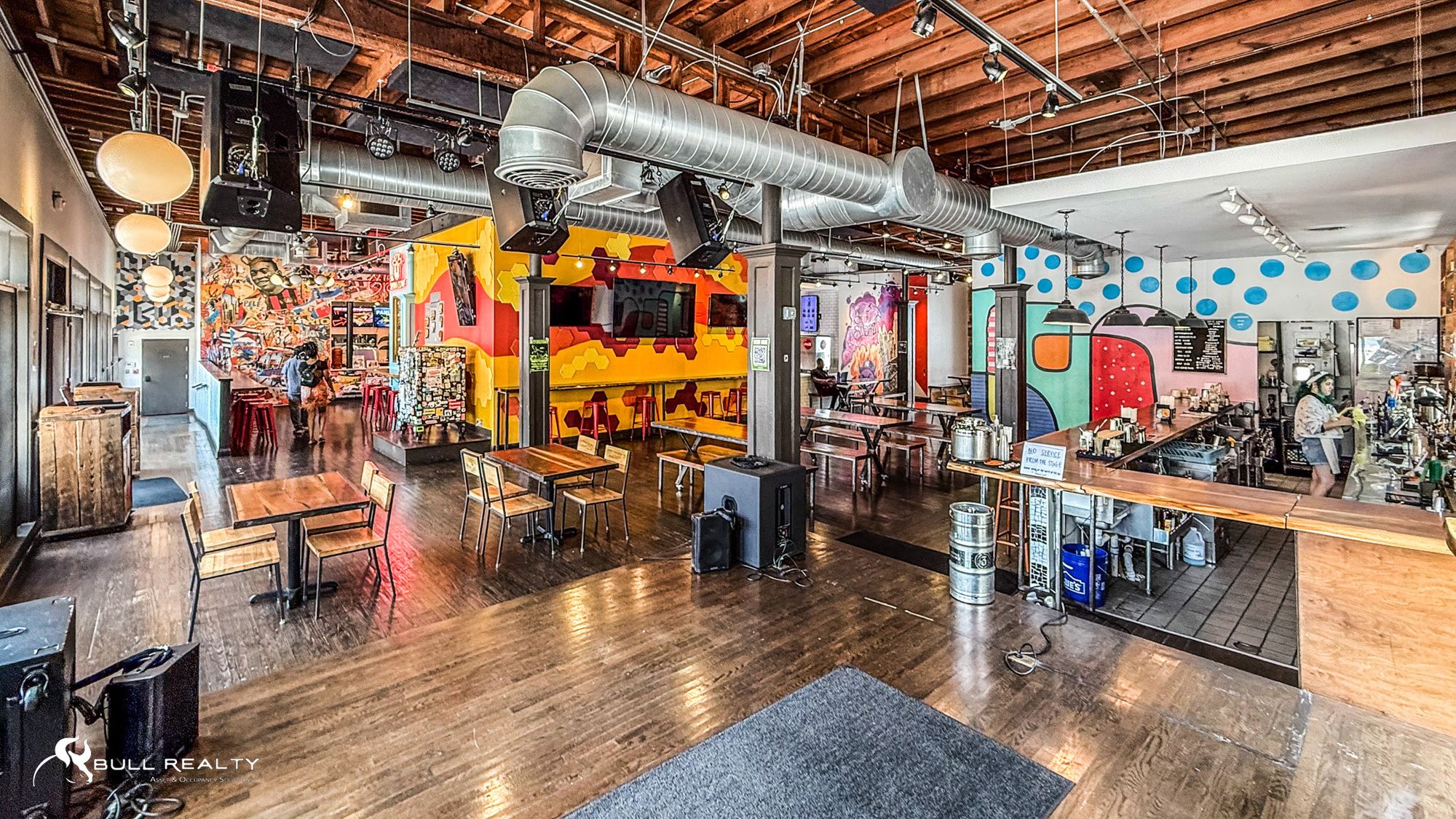 Renovated food hall and nightlife venue in vibrant location.