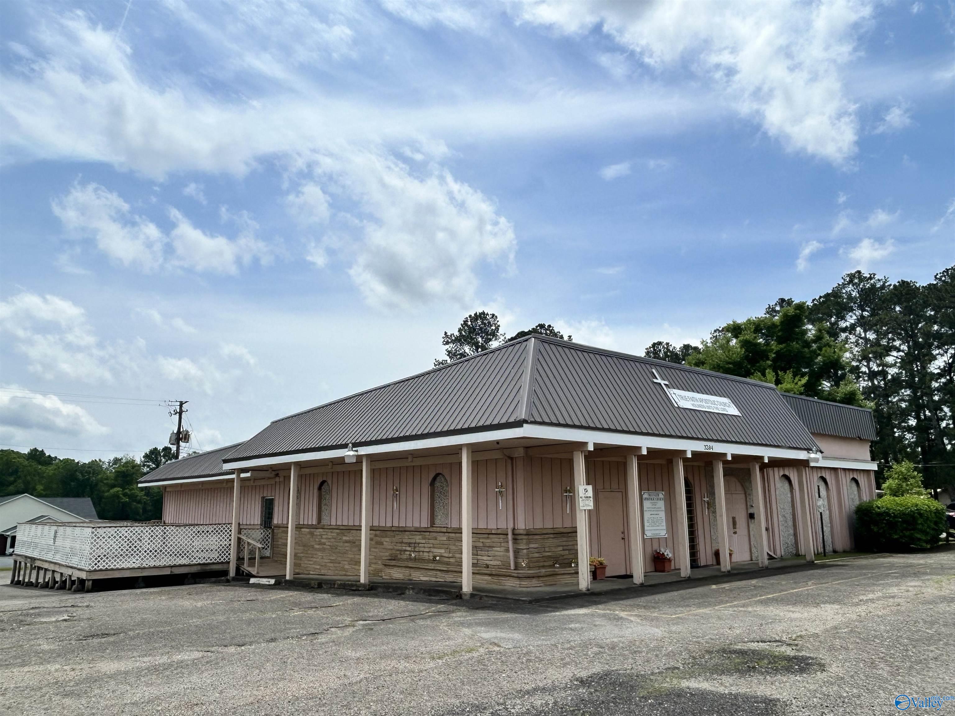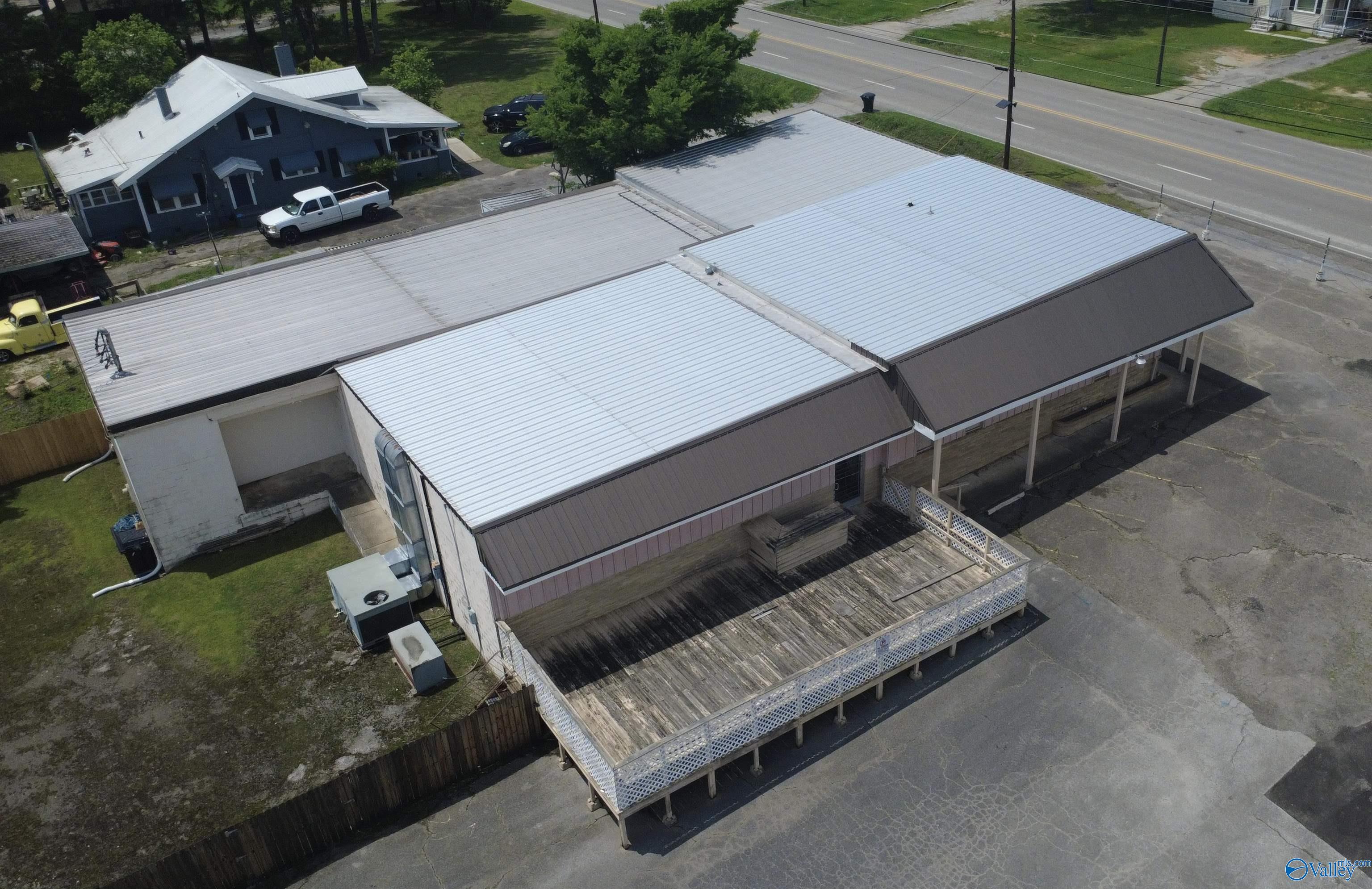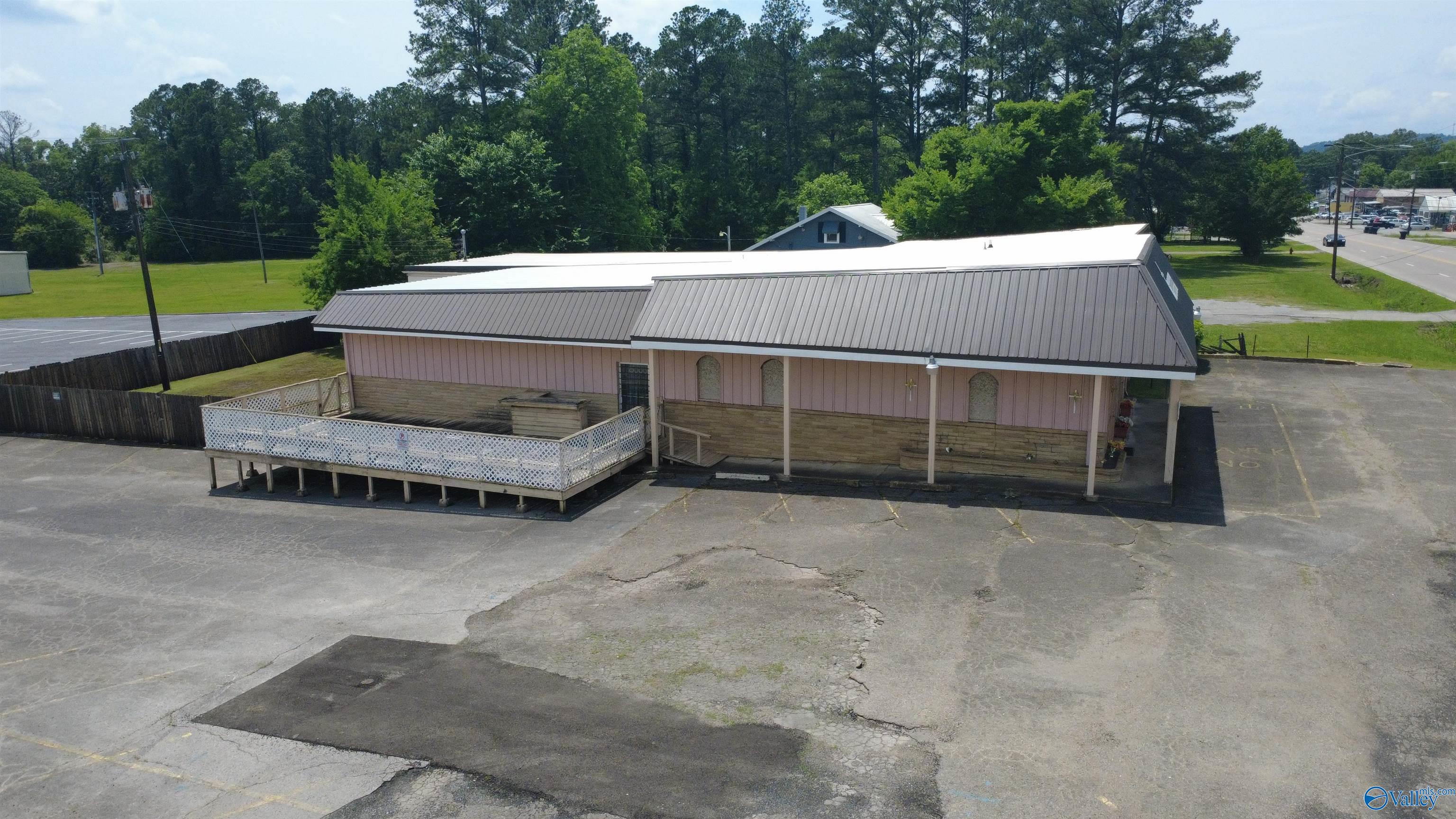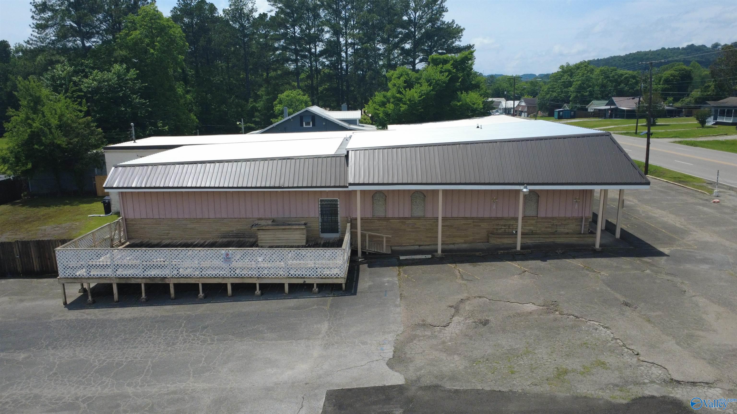 This property features: Large building on a corner lot suitable for various business types (previously a restaurant and worship center).; Large parking lot with easy entrance/exit.; New roofing with a 2‑year warranty.