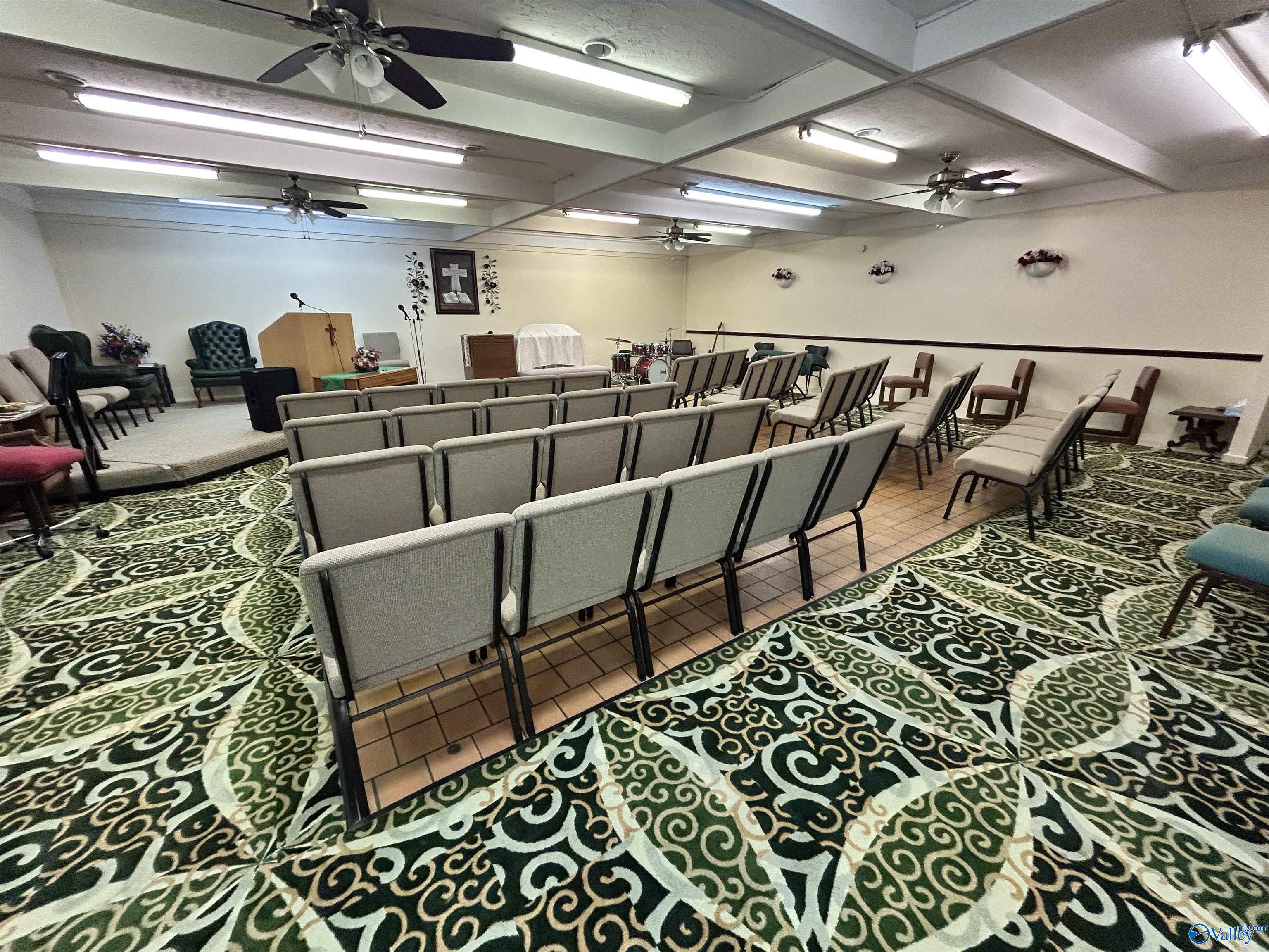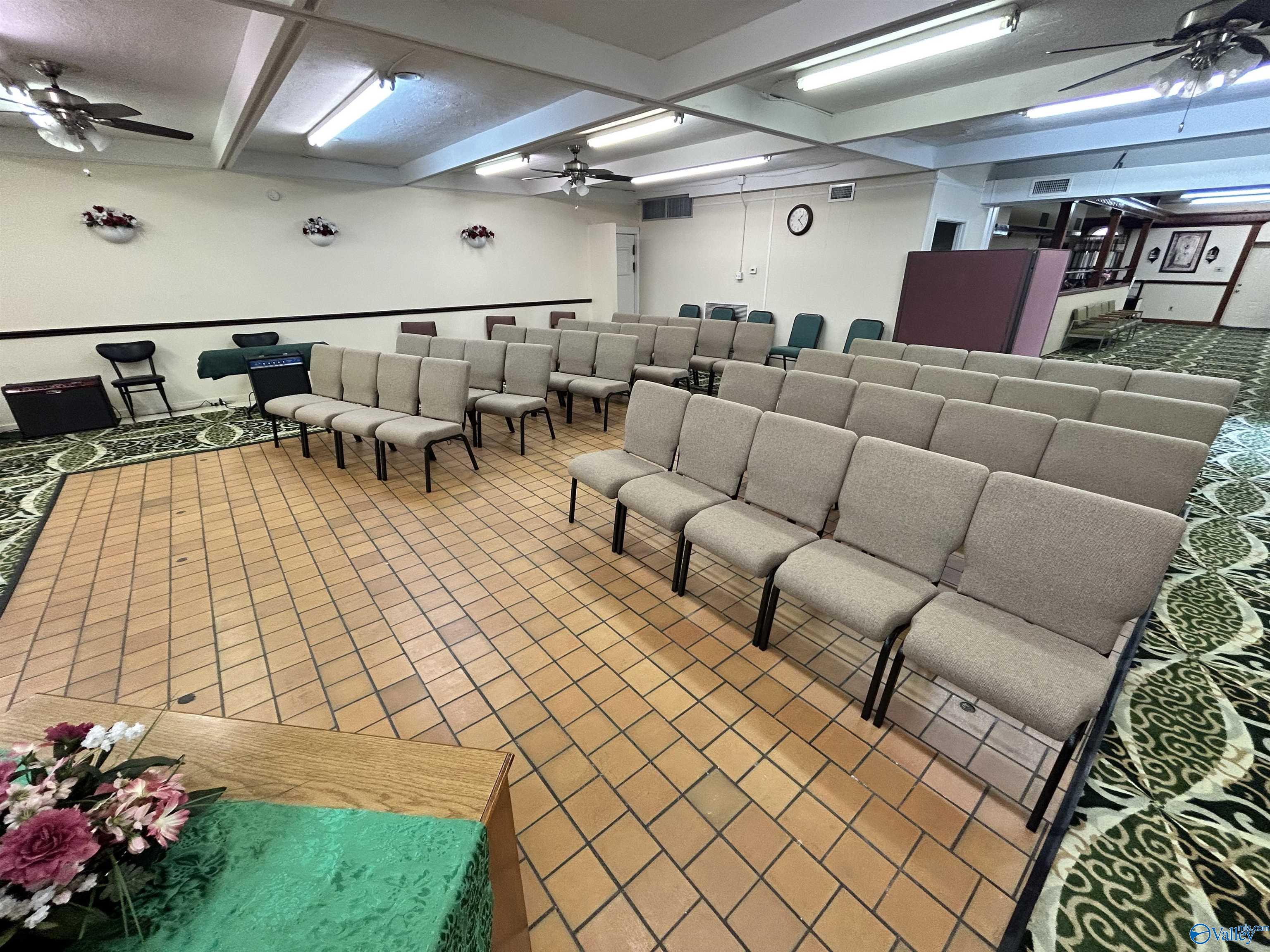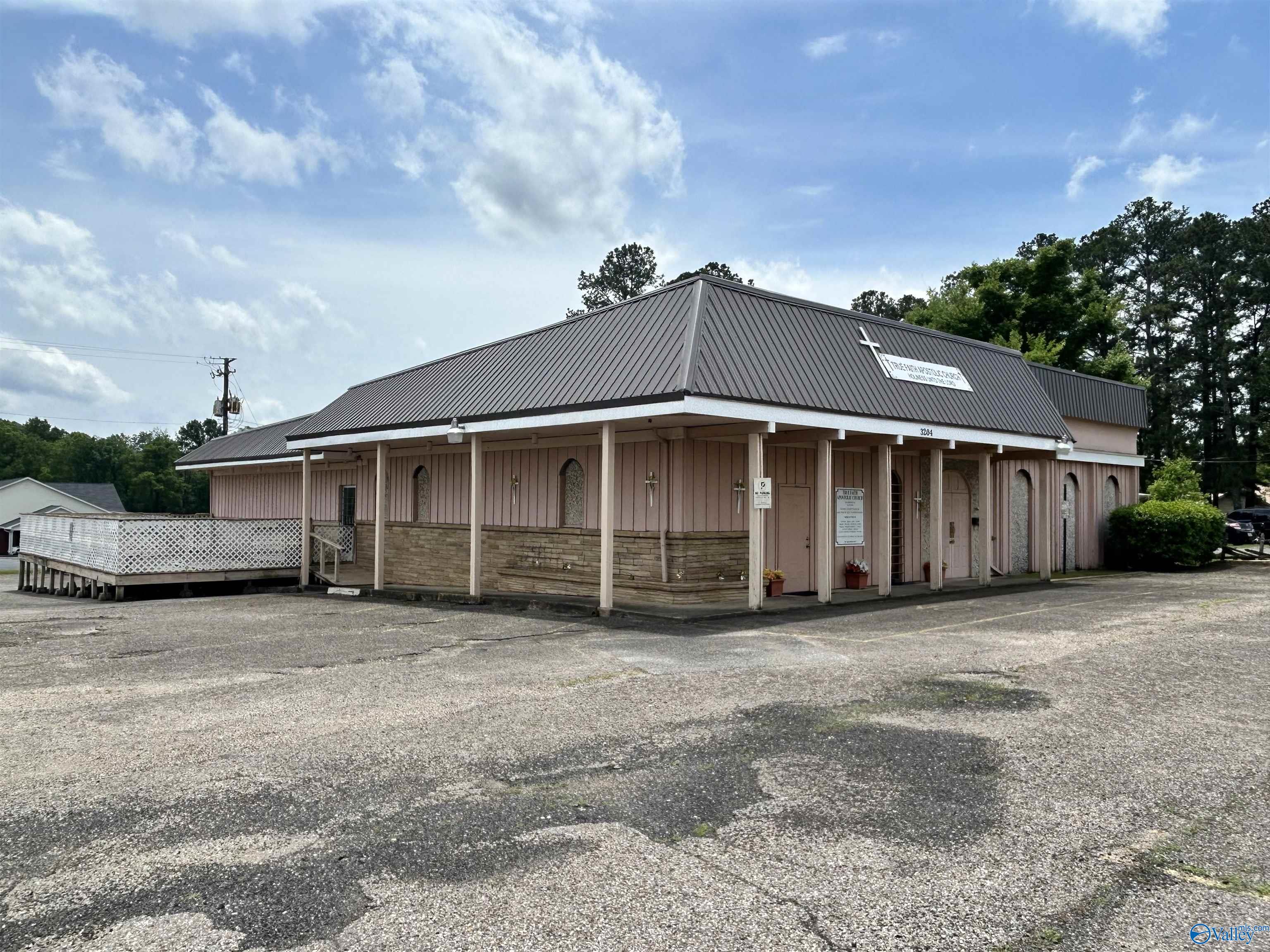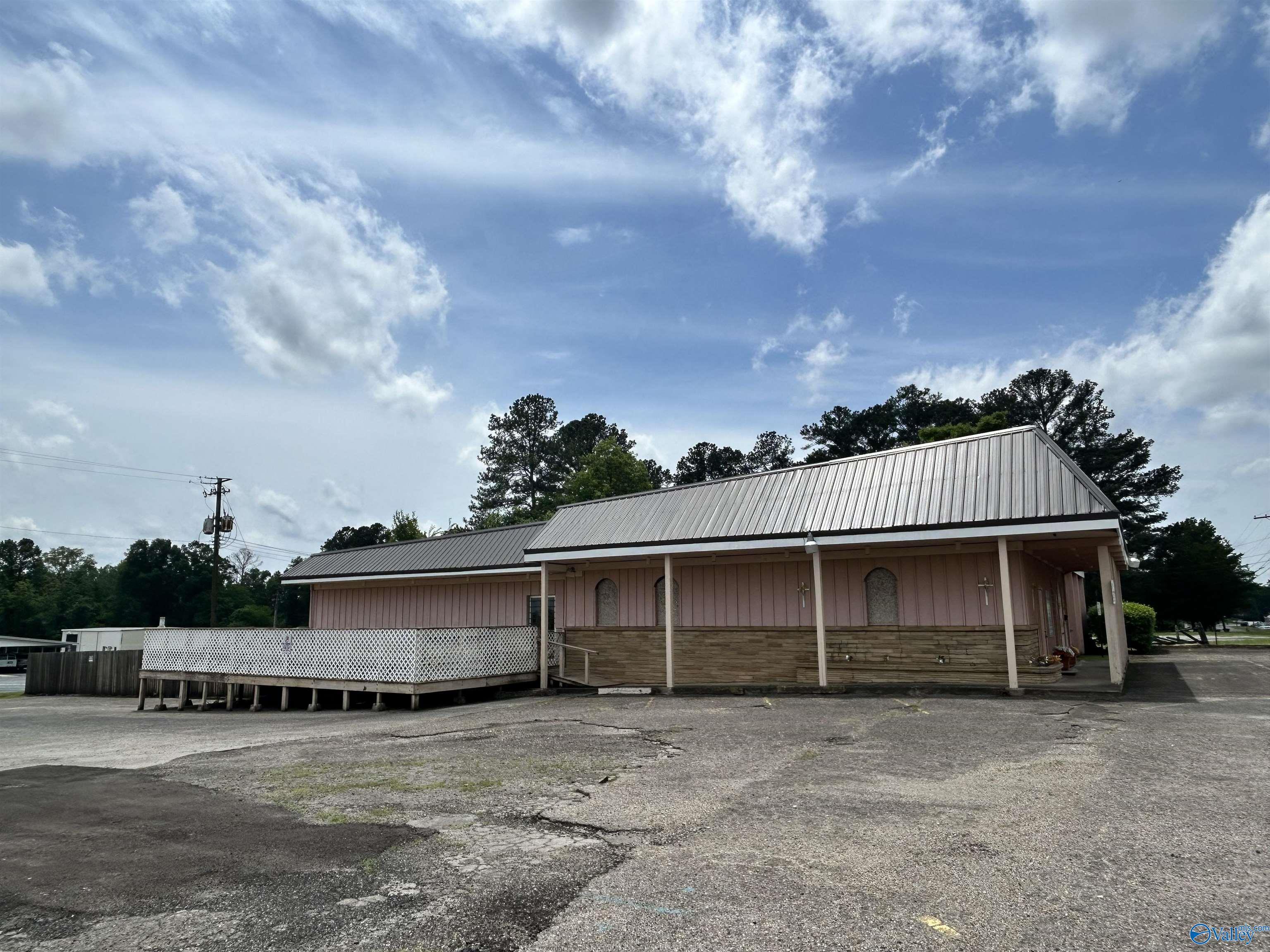 This property features: Large building on a corner lot suitable for various business types (previously a restaurant and worship center).; Large parking lot with easy entrance/exit.; New roofing with a 2‑year warranty.