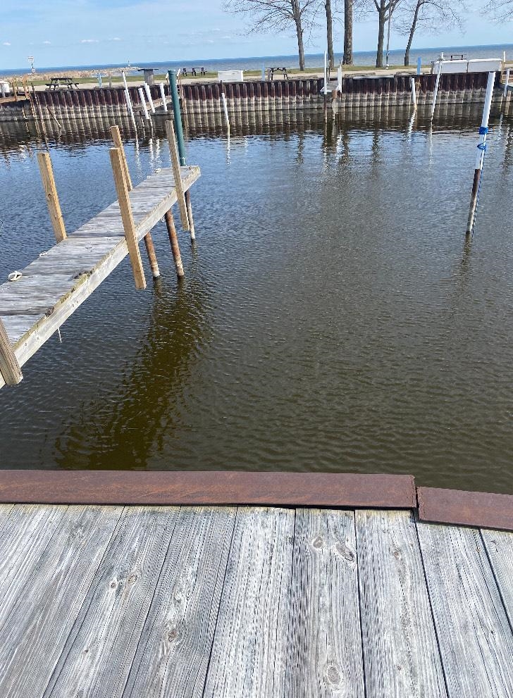 This waterfront land includes a stationary slip that can be lowered and raised to accommodate varying water levels. Power and water hookups are available. The slip can accommodate a boat up to 34 feet in length. Note that access to the slip from the campground requires walking down commons.
