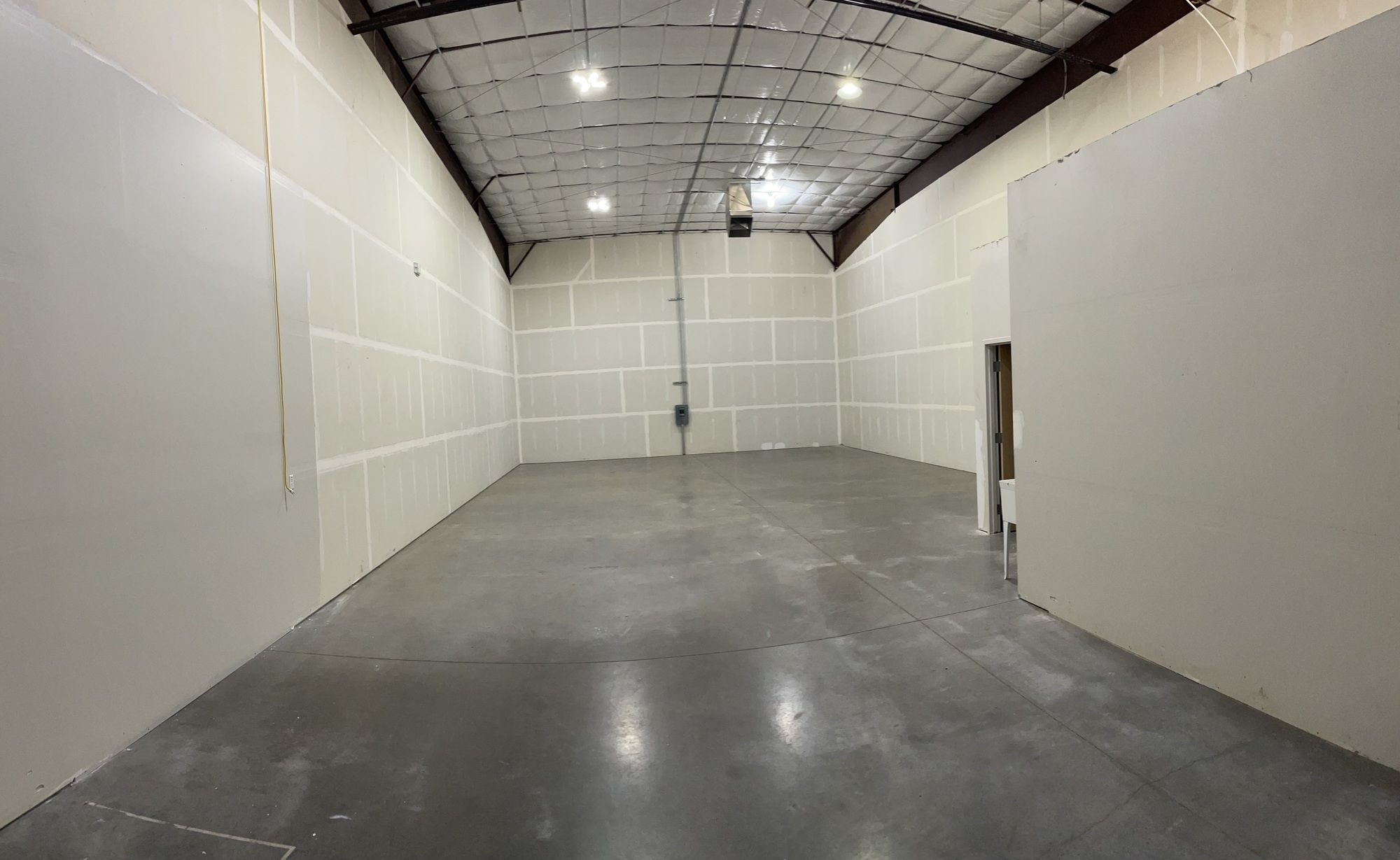 Flex space featuring solid steel frame construction and overhead doors.