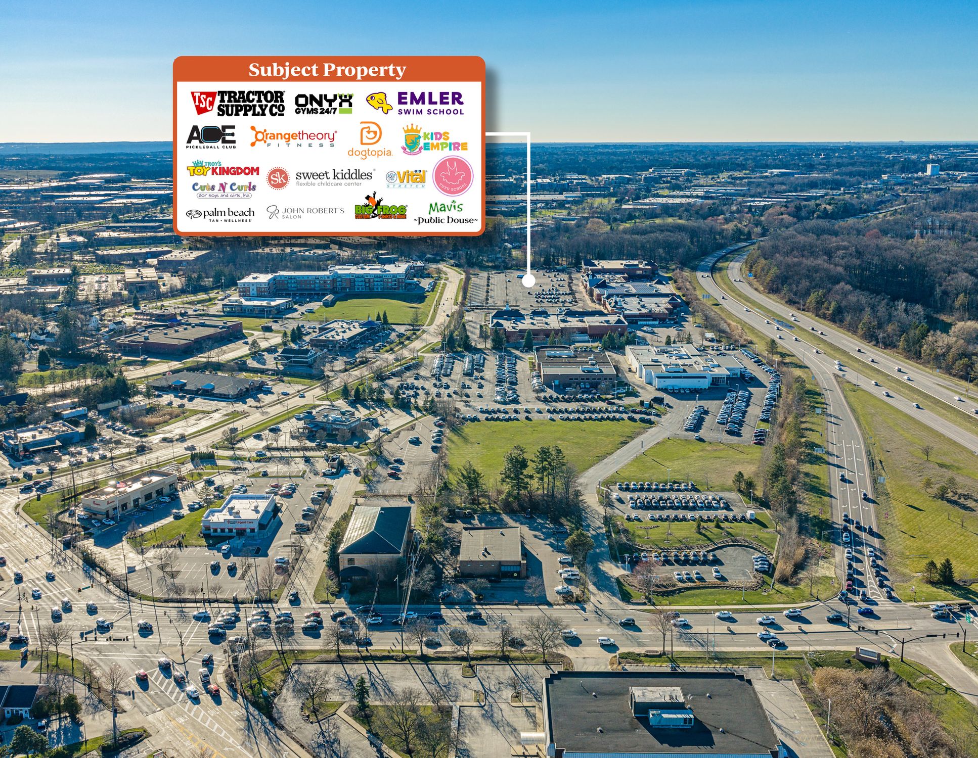 Neighborhood retail center in Solon, Ohio, 100% occupied.
