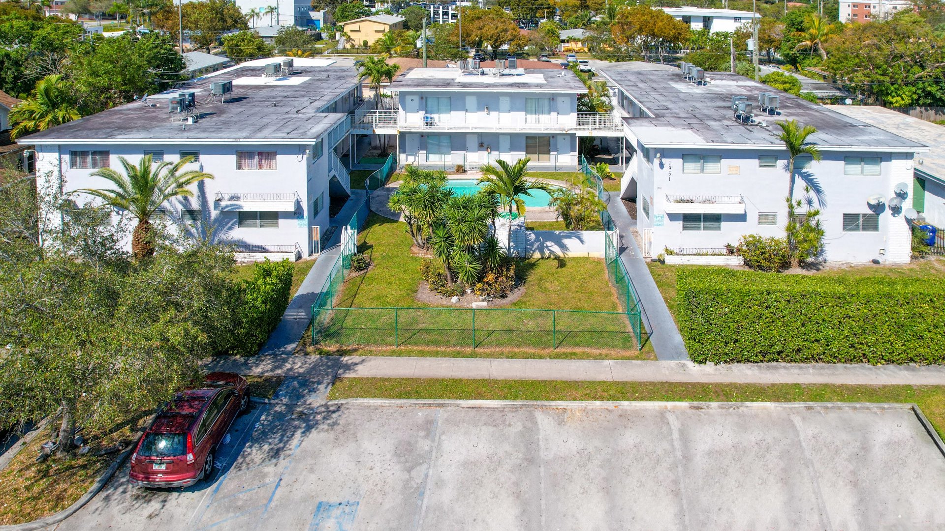 The property at 1951 Northeast 167th Street in North Miami Beach is a 20-unit condominium building. Constructed in 1960, the building features concrete block and painted stucco construction with a flat roof. The building totals 12,536 square feet on a 19,050-square-foot lot. The unit mix includes 14 one-bedroom/one-bathroom apartments, 2 two-bedroom/one-bathroom apartments, and 4 two-bedroom/two-bathroom apartments. Units feature ceramic tile flooring, electric appliances, and central air conditioning. Common area amenities include a fenced courtyard, swimming pool, and laundry room. The property is located in North Miami Beach, Florida, with convenient access to Federal Highway (US-1) and Biscayne Boulevard, placing residents near major employment corridors and a dense concentration of retail, dining, and entertainment options. The surrounding area reports an average household income of $92,797. Residents benefit from walkable access to Greynolds Park and Greynolds Golf Course, with close proximity to Aventura Mall, Sunny Isles Beach, Haulover Beach, and numerous national retailers and restaurants. Nearby points of interest include the North Miami Beach Police Department, Julius Littman Performing Arts Theater, Victory Park Pool, and Judge Arthur Snyder Tennis Center. Also nearby are North Miami Beach High School, John F. Kennedy Middle School, Saint Lawrence Elementary School, and Scheck Hillel Community School K-12.