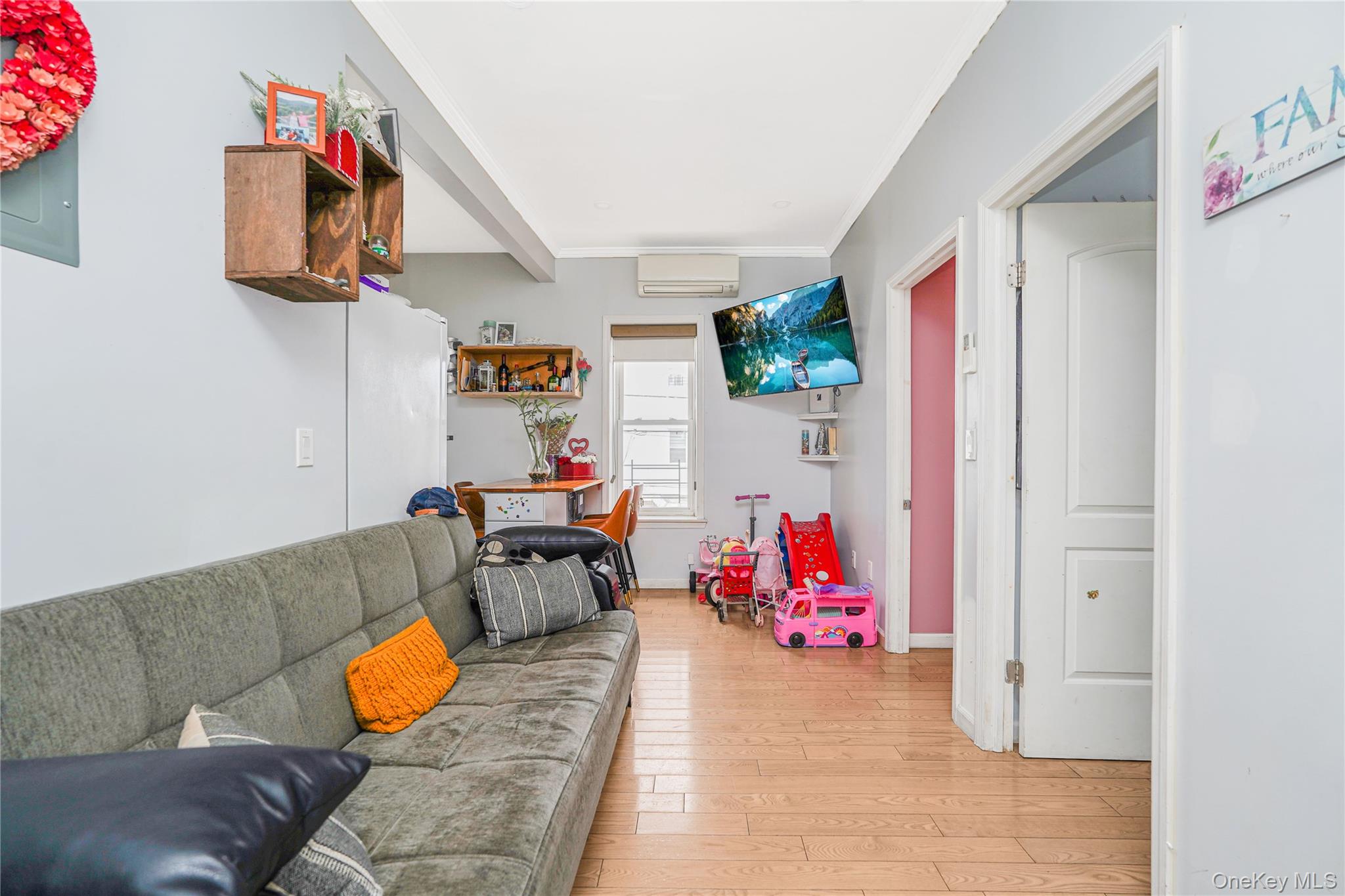 This mixed-use corner property is located in Dyker Heights and offers an opportunity for investors or end users. The property features two 2-bedroom residential units on the second floor, with the rear unit providing direct access to a spacious outdoor deck. The ground level includes a commercial space currently operating as a nail salon and office. The property was renovated approximately 7 years ago and includes a finished basement and private parking. The location has a walk score of 96, indicating it is a Walker's Paradise, a transit score of 84, indicating excellent transit options, and a bike score of 56, indicating it is bikeable. The property is income-generating.