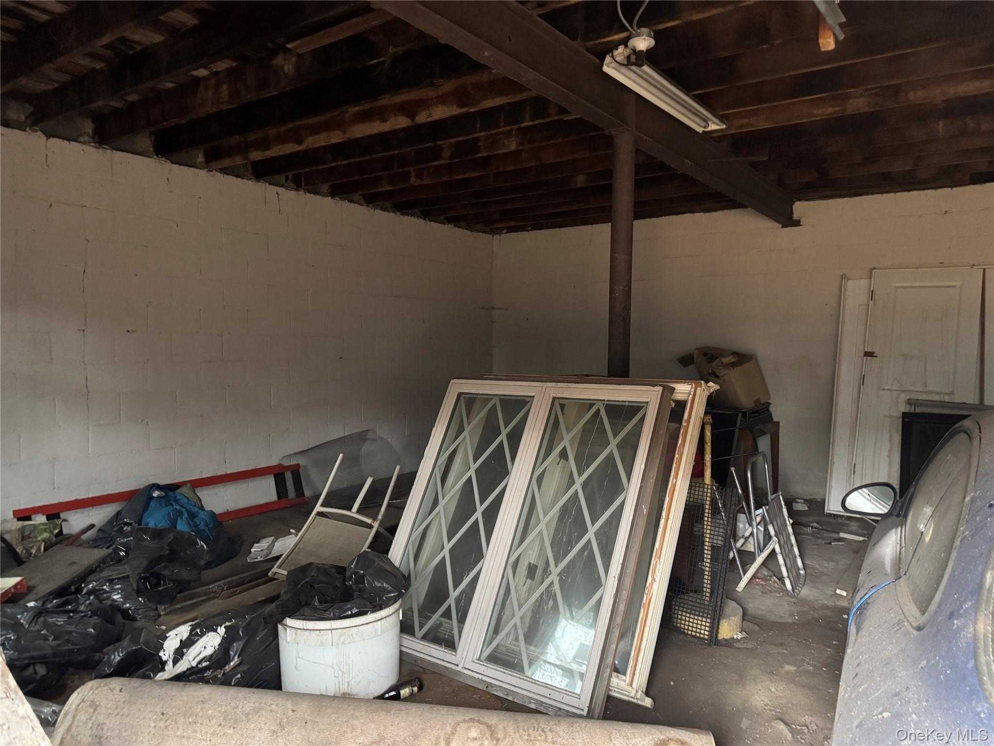 This two-story block building is situated on a 50x100 lot in Newburgh. It features two separate garage bays, each with upstairs areas. The property is zoned for storage and distribution. Interested parties should contact the City of Newburgh planning department for guidance on any renovations. The location has a walk score of 86, indicating it is very walkable, and a bike score of 51, making it bikeable.