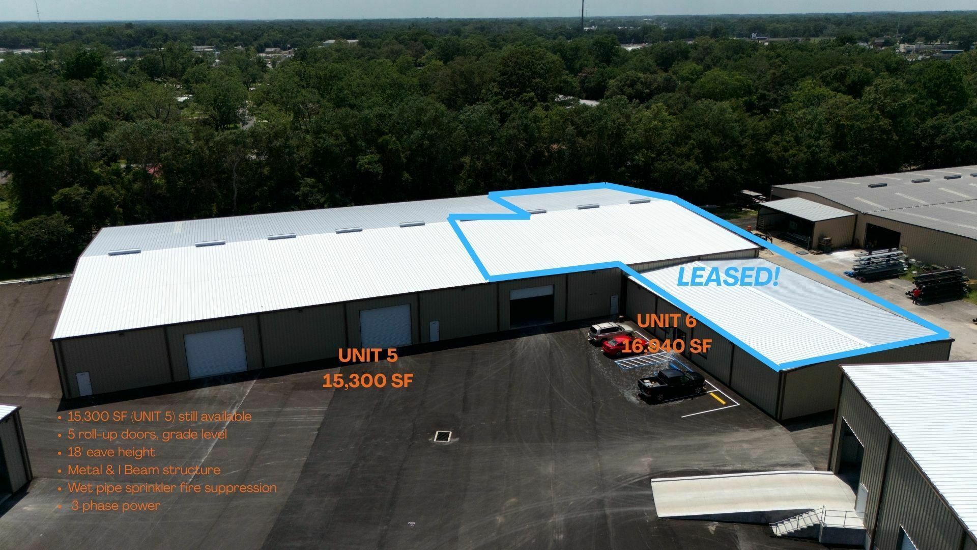 Industrial property with 116,400 SF across three buildings.