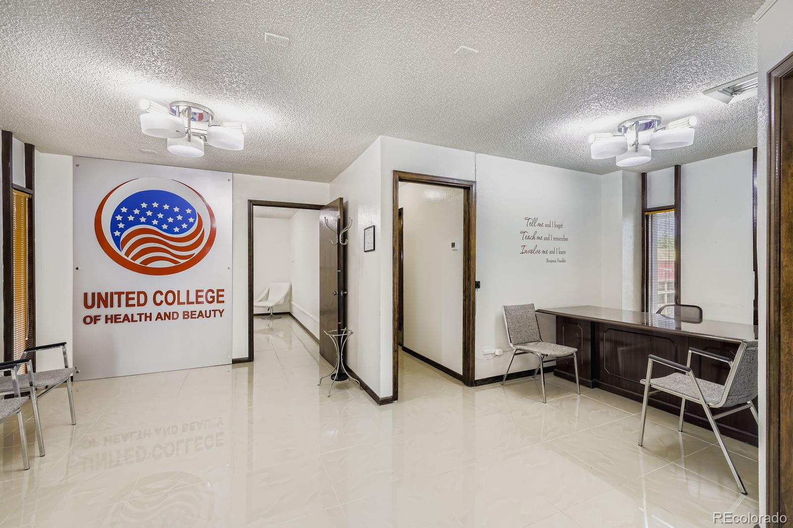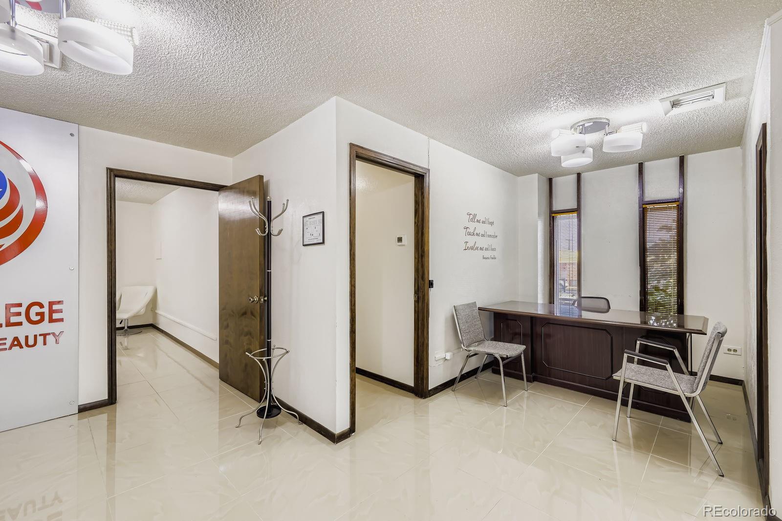 Located at 4219 S Broadway in Englewood, this office property offers excellent visibility and flexible space along a busy commercial corridor. The freestanding building features prominent Broadway frontage, a large aluminum sign, and a double-sided illuminated monument sign. Zoned MU-B-2, the property supports a variety of commercial uses. The split-level layout includes seven private offices or classrooms, a reception area, two restrooms, and a break/copy room on the upper level. The lower level features a large conference room, an additional office, and secure flex/storage space. The property was fully remodeled in 2015, with recent improvements including three new HVAC zones in 2022 and updated LED lighting. The property is currently configured as a health and beauty training facility. With 10 private parking spaces and partially fenced exterior storage, this property is well-equipped for business operations. Existing furniture and equipment are available and may be included in the lease, subject to negotiation. The property is also available for sale or lease-to own.
