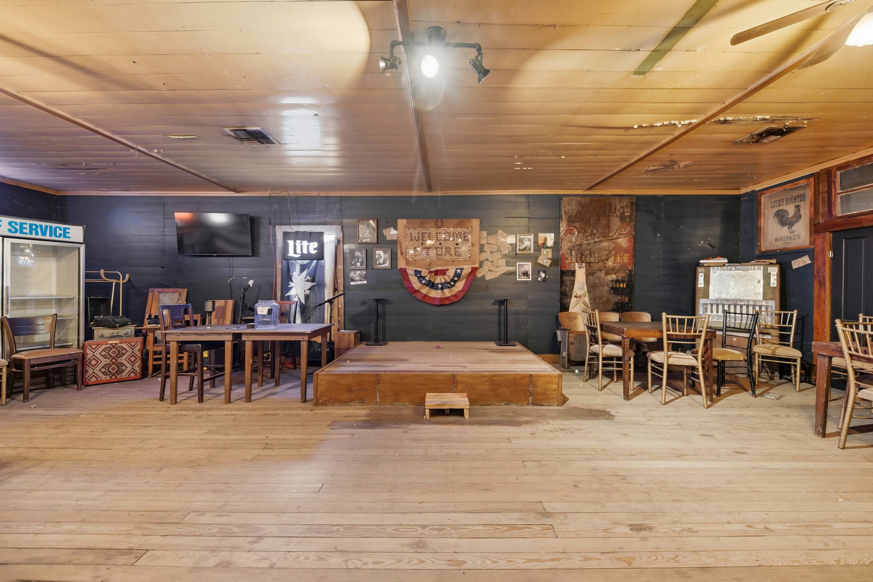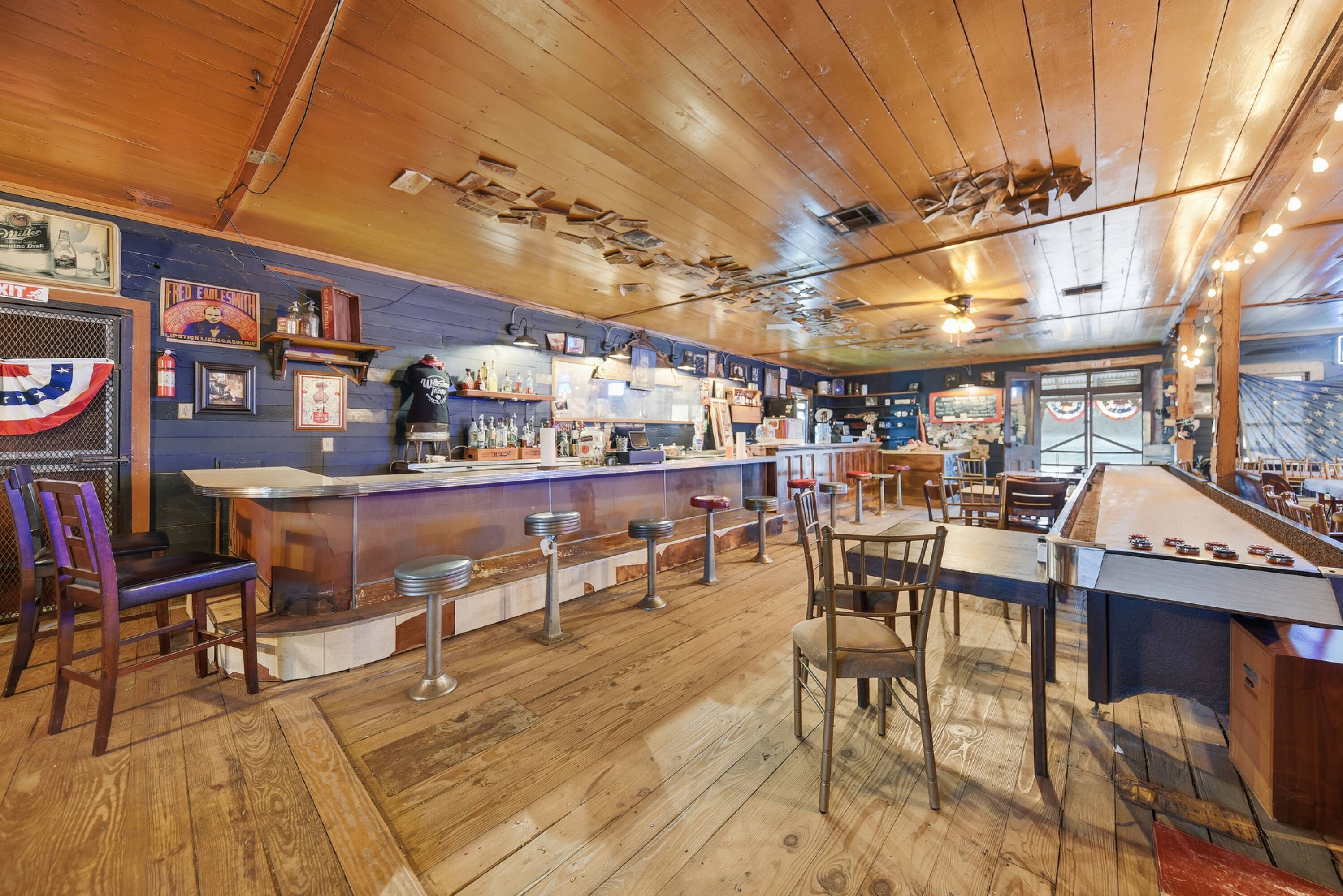 Charming general store with ample space and outdoor gathering area.