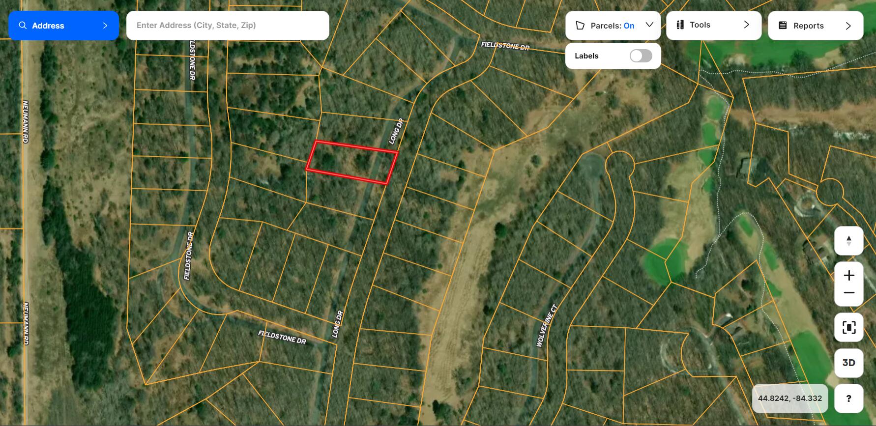 0.69-acre buildable lot in Garland's Woods, Lewiston, Michigan.