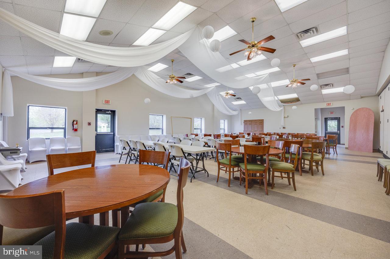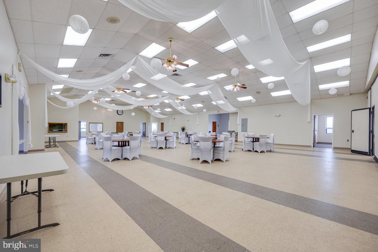 This commercial building, spanning over 8,000 square feet, is currently operating as a turn-key wedding and event venue. Known locally as the Goodrich Center, the property is situated in the heart of the Shenandoah Valley on 2.5 acres between Luray and Stanley, Virginia. The property features a welcoming foyer that opens to a banquet hall, which can be divided to create a more intimate space. Existing office and planning spaces offer organization and convenience. The commercial kitchen includes preparation space, walk-in refrigeration, and a deep freezer. The property is offered with equipment for hosting and catering, including tables, chairs, decorations, and linens. The location provides convenient access to the Shenandoah National Park, George Washington National Forest, Shenandoah River, and Luray Caverns. This property is suited for owning and operating a wedding or special event business.