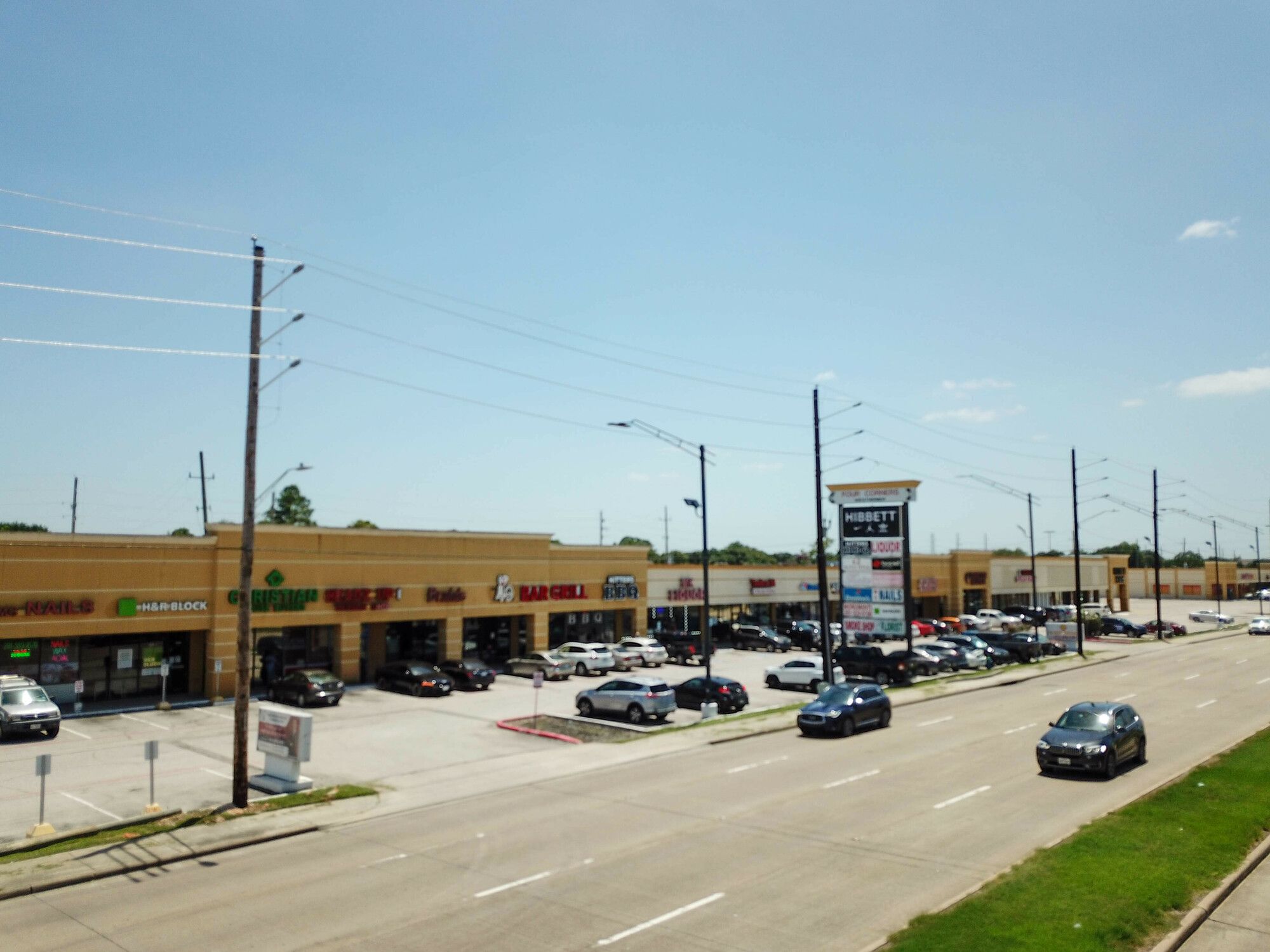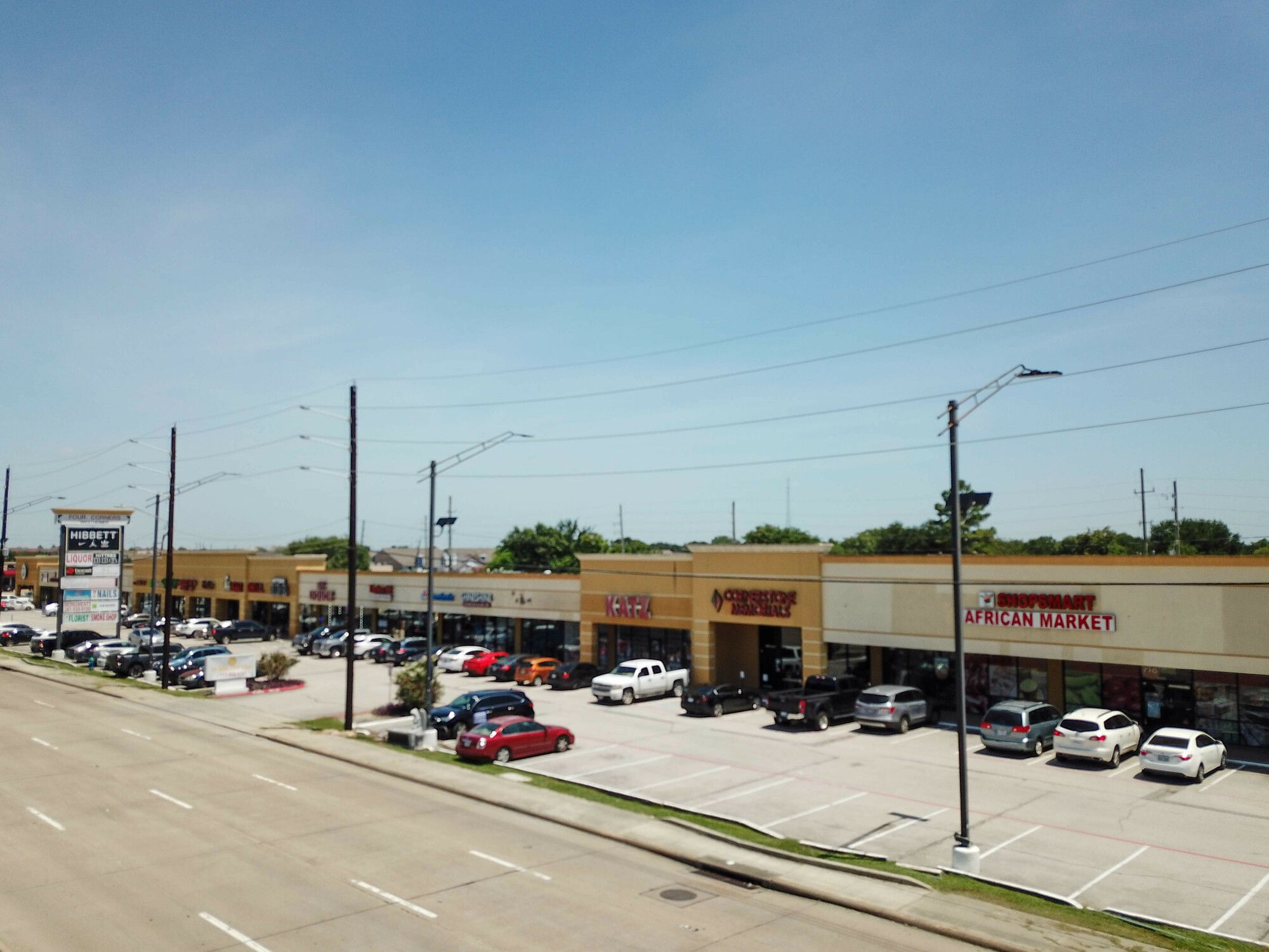 Retail spaces for lease in Houston's Four Corners Shopping Center.