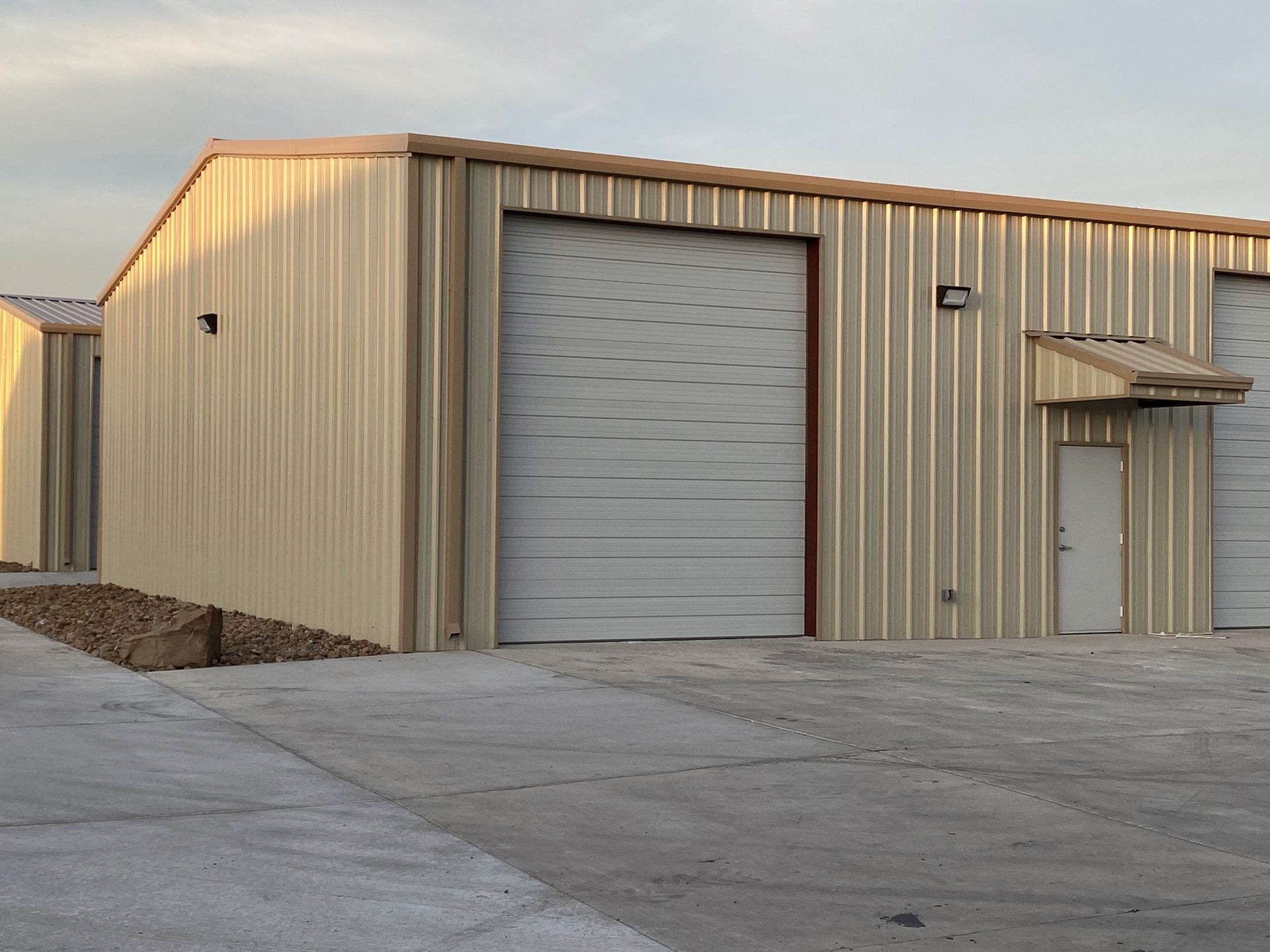 New construction office/warehouse suites are available for rent in College Station, TX, located off HWY 30. Situated in Tonkaway Business Park on Tonkaway Lake Road, the location provides convenient access to major roads and Texas A&M University. These modern warehouse-office spaces are positioned in a high-visibility area, suitable for businesses seeking growth. The industrial office/warehouses feature insulated warehouse space with 14-foot bay doors and drive-thru capability. The landlord covers all expenses, including water and sewer. The tenant is responsible for electric and internet services. Security cameras are installed at the entrance and throughout the property.