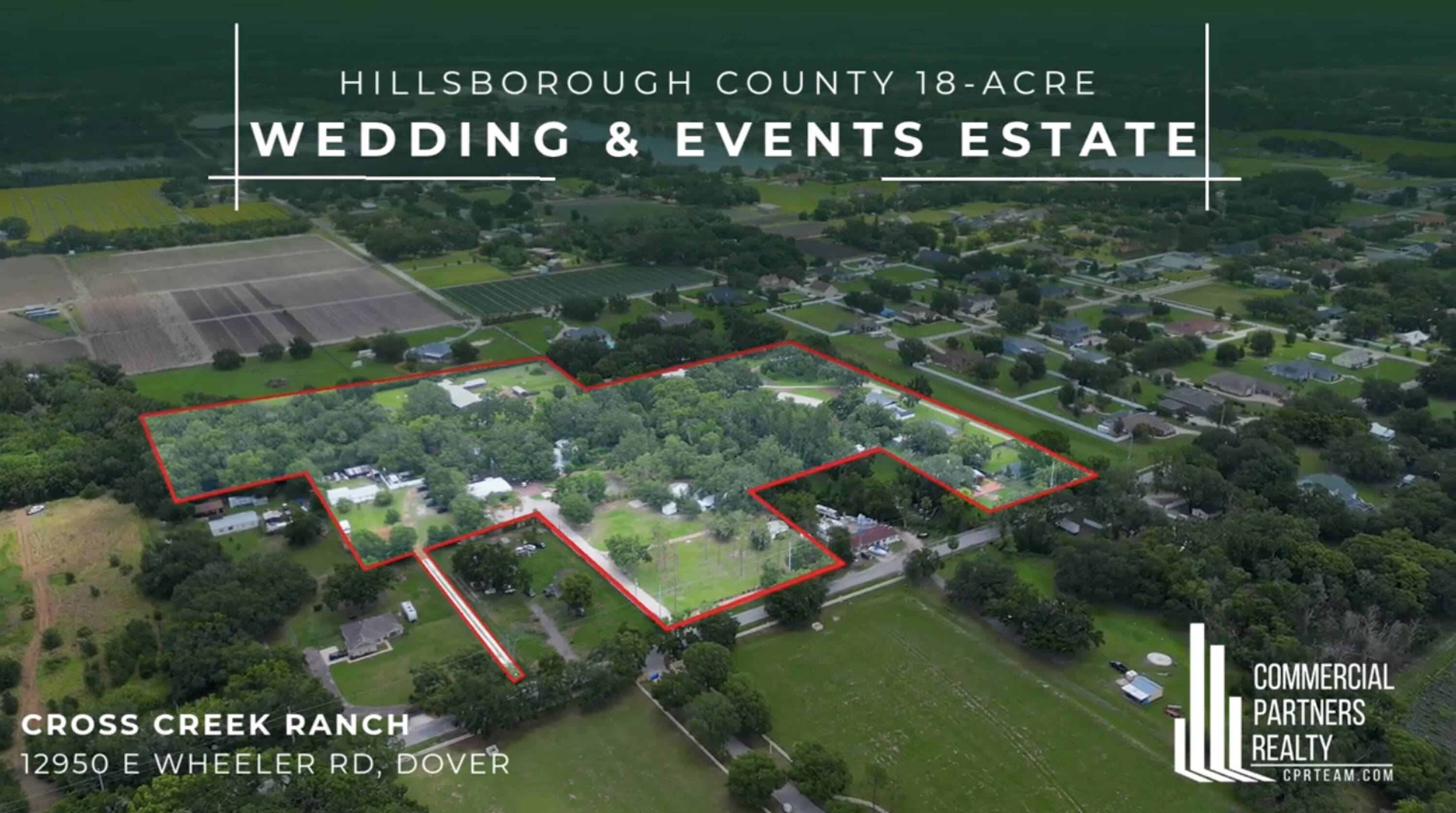 18-acre ranch with multiple houses and wedding venues.