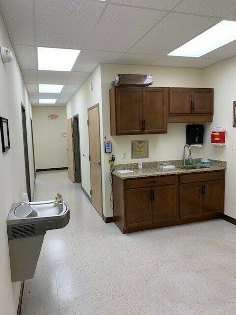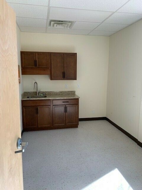 Office space featuring reception, five private offices, and break room.