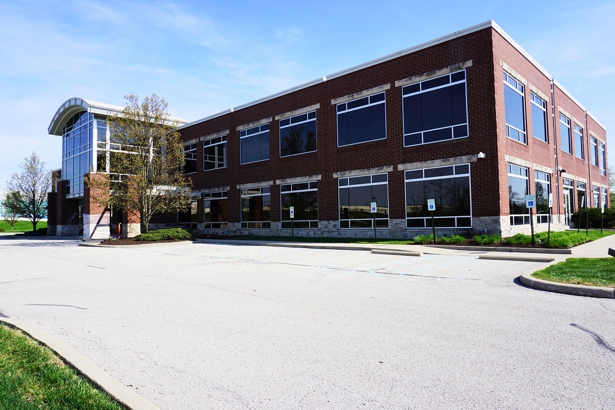 Two-story office building with amenities in Carmel, Indiana.