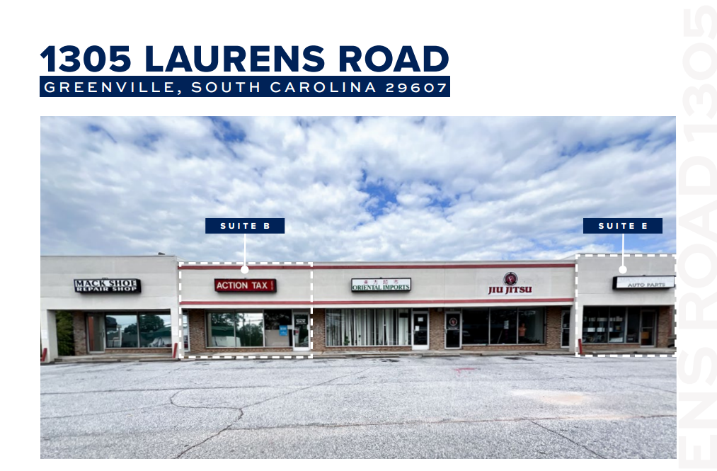 Retail space for lease in high-traffic Greenville corridor.