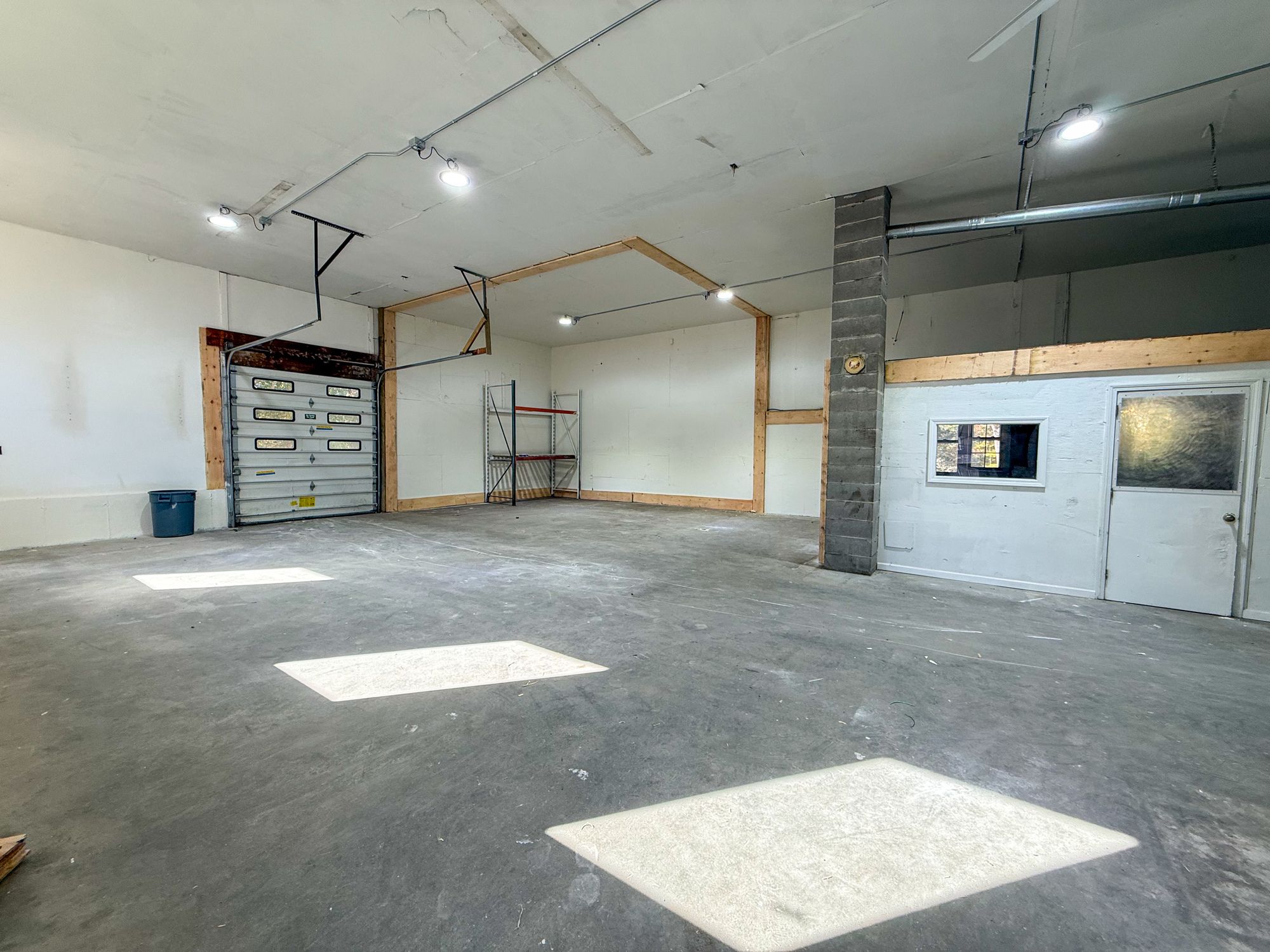 4,000 SF industrial space with loading and garage door.