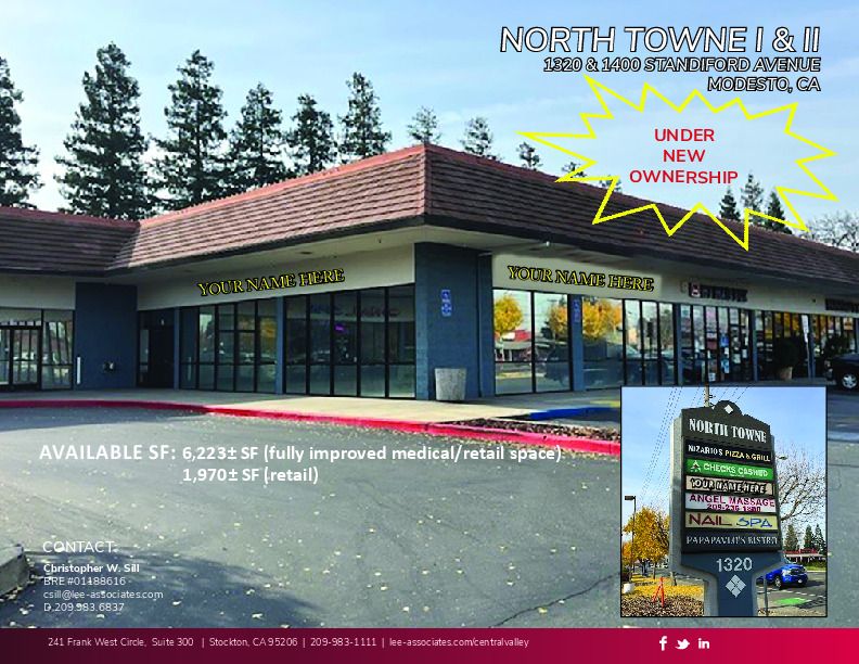 6,223 SF medical/retail space in high-visibility Modesto center.