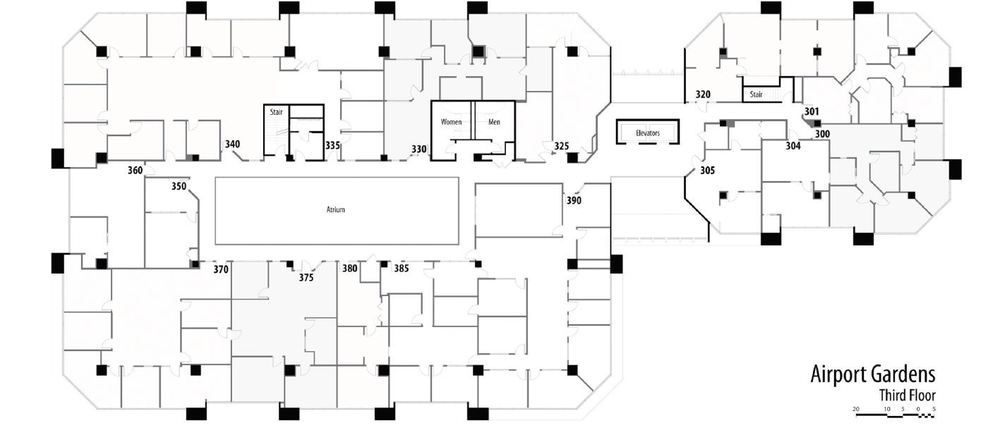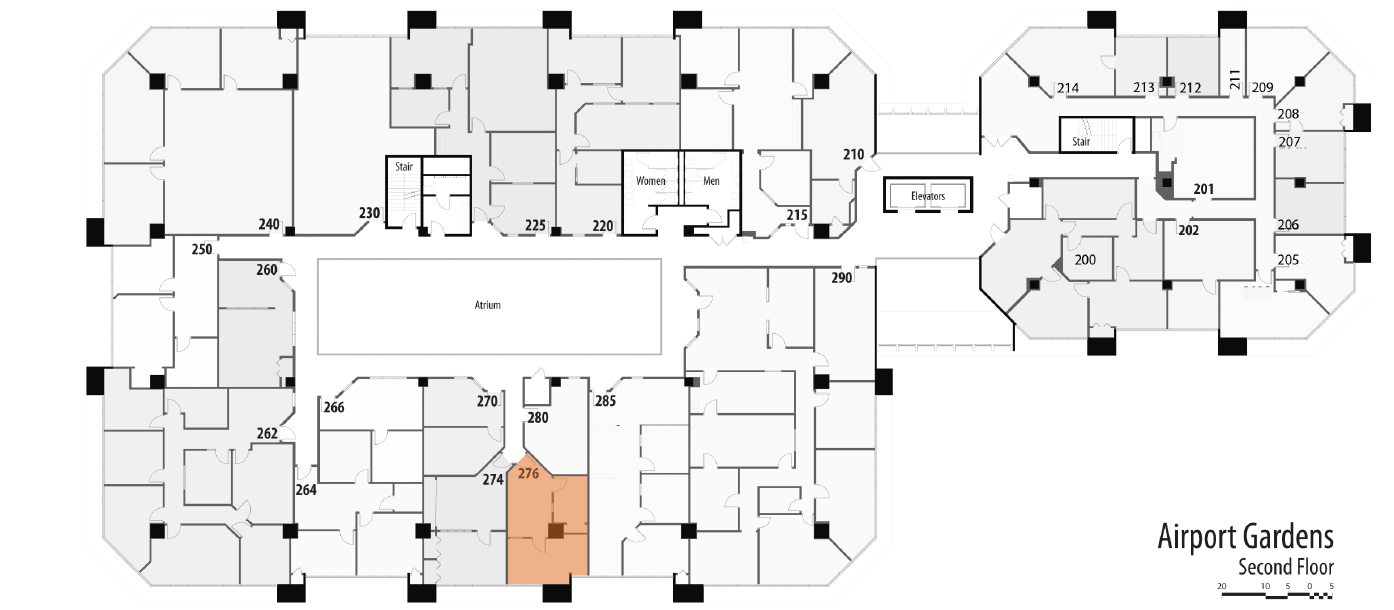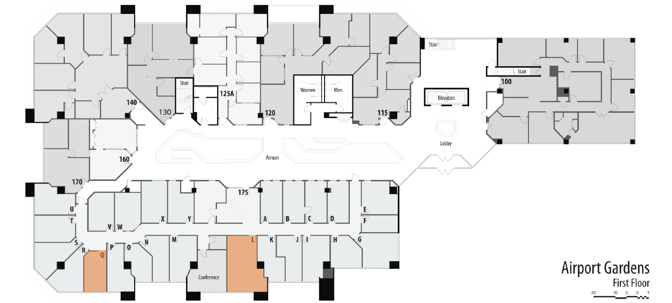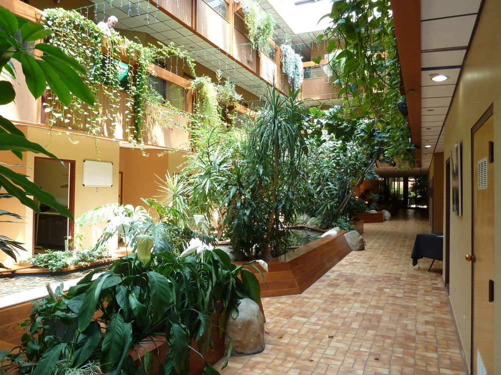 Office suites with gym, sauna, and fiber optic internet.